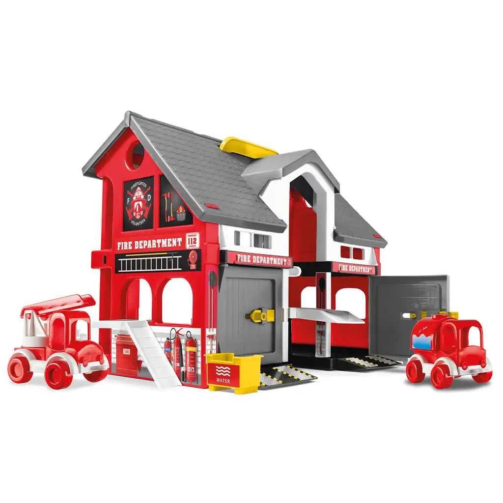 Sada obsahuje dve hasičské vozidlá, ktoré sa ľahko pohybujú po rampách. Detailné nálepky, nápisy „Fire Department“ a pristávacia plocha pre vrtuľník robia hru ešte realistickejšou. Vďaka robustnému vyhotoveniu je odolná a spoľahlivým spoločníkom na každodenné hranie po dlhý čas.