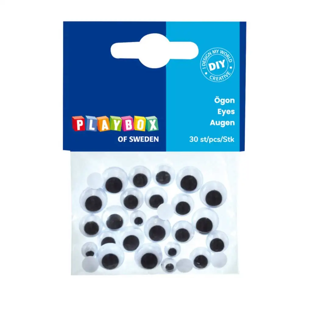 PlayBox: Čierno-biele pohyblivé oči s mihalnicami v rôznych veľkostiach, 30 ks.PlayBox: Čierno-biele pohyblivé oči s mihalnicami v rôznych veľkostiach, 30 ks.