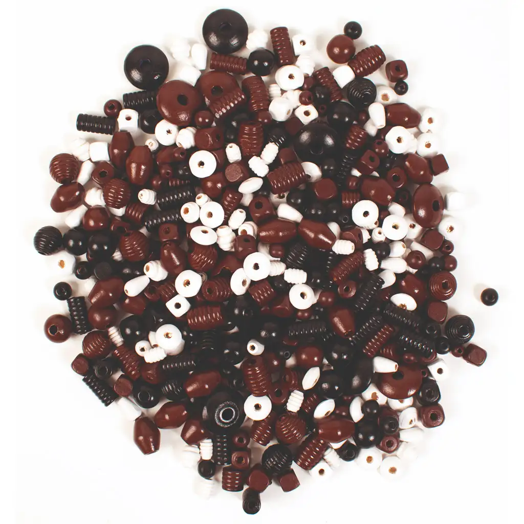 PlayBox: Drevená súprava korálok v hnedých a bielych farbách, 450 kusov