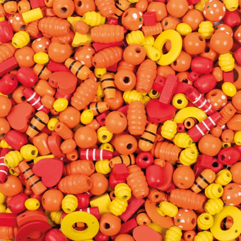 PlayBox: Drevené korálky na varenie v žltých a červených farbách, zmiešané, 250g sada.PlayBox: Drevené korálky na varenie v žltých a červených farbách, zmiešané, 250g sada.