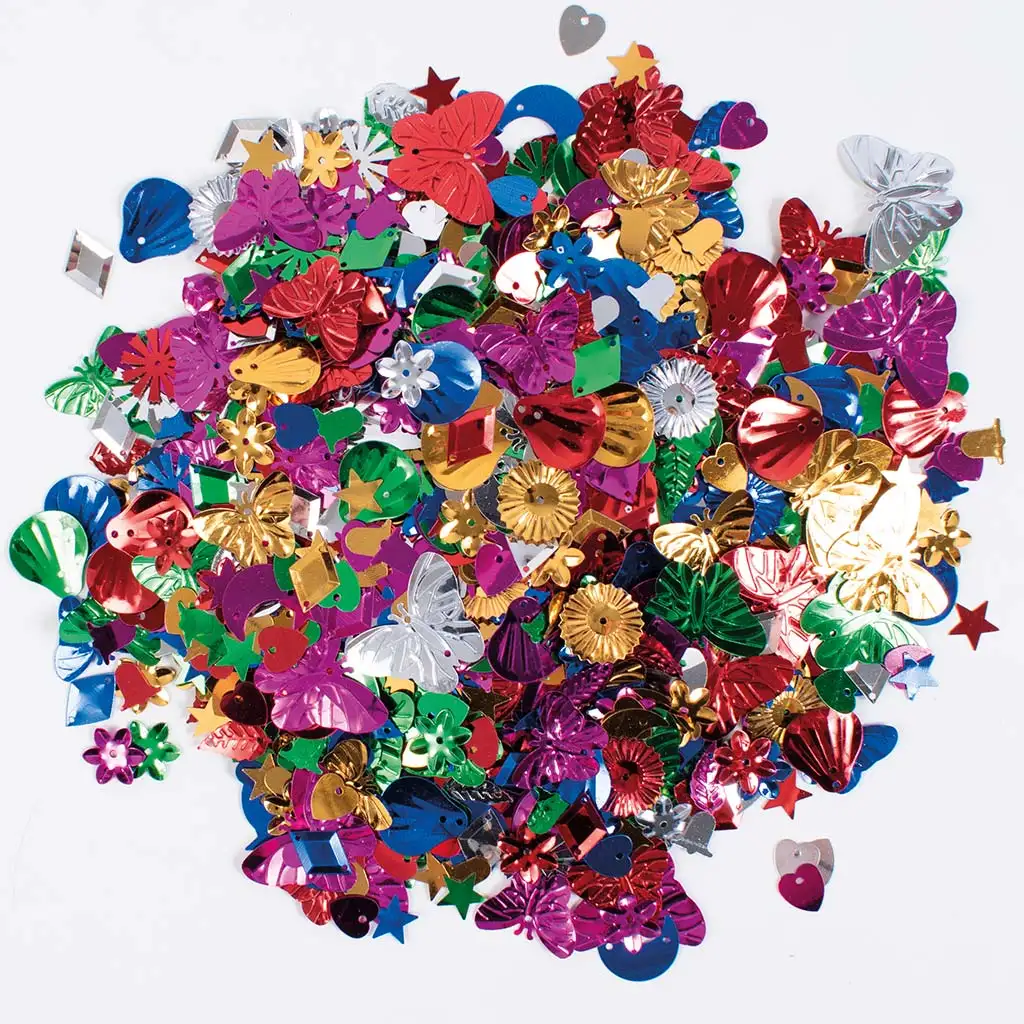 PlayBox: Farebné flitre v rôznych farbách, veľkostiach a tvaroch, balenie 100g.PlayBox: Farebné flitre v rôznych farbách, veľkostiach a tvaroch, balenie 100g.
