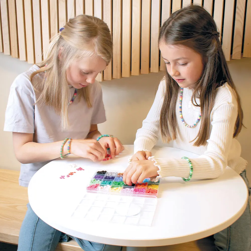 Súprava Heishi korálok na navliekanie PlayBox je skvelou voľbou, ak má vaše dieťa rado výrobu vlastných šperkov. Súprava obsahuje celkom 3500 farebných Heishi korálok, ktoré vďaka svojmu plochému, kotúčovitému tvaru obzvlášť dobre vyzerajú v náramkoch, náhrdelníkoch alebo aj v kľúčenkách. Rôzne veselé farby umožňujú, aby si vaše dieťa vytvorilo jedinečné vzory a farebné kombinácie.