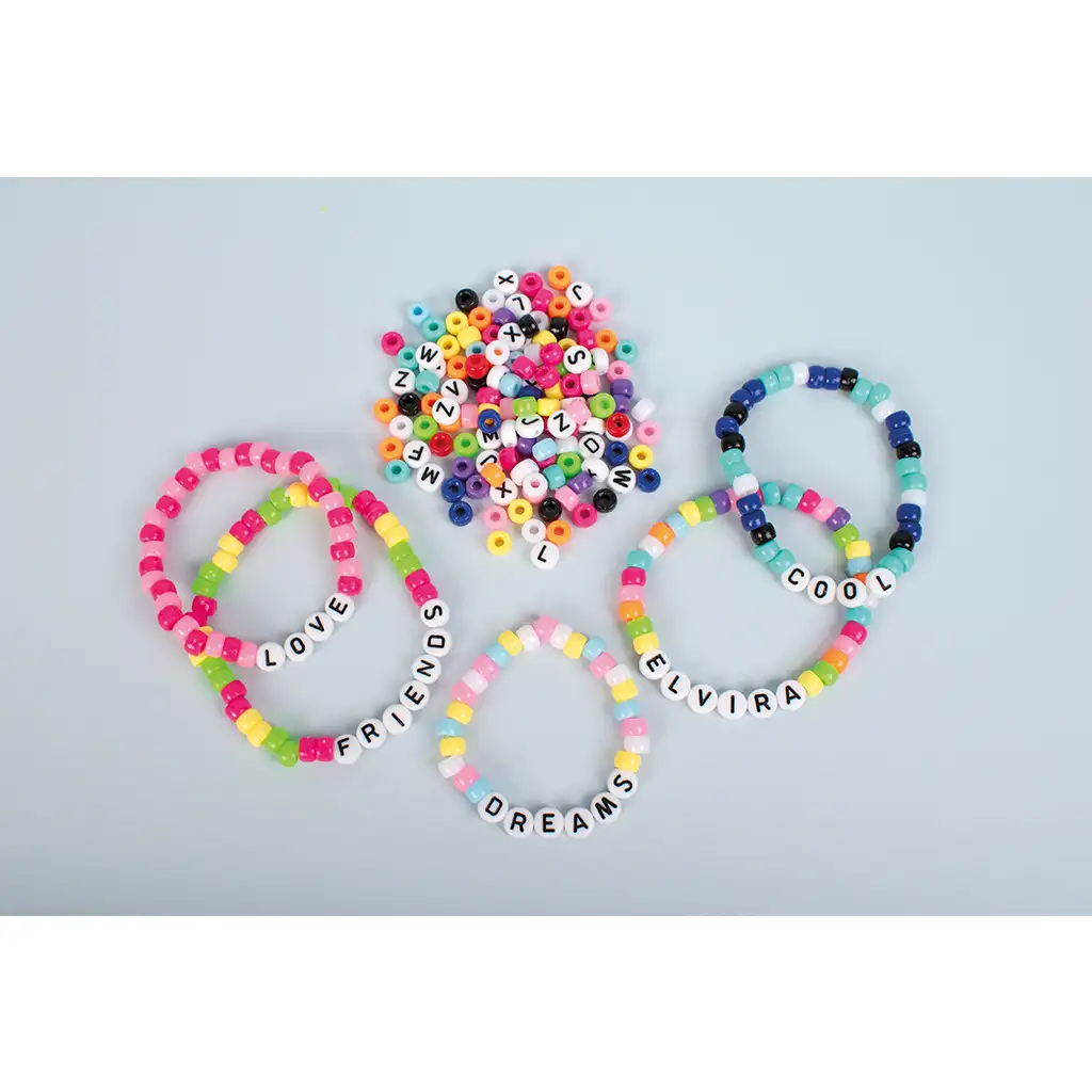 Biele koráliky s čiernymi písmenami sú ľahko čitateľné, farebné koráliky zase dodávajú hotovým šperkom živý a veselý vzhľad. Súprava obsahuje všetky veľké písmená abecedy, takže si môžete vyskladať akékoľvek meno, slovo alebo krátky odkaz. Veľkosť korálikov je ideálna do detských rúk, otvory sú dostatočne veľké na to, aby sa dali jednoducho prevliecť šnúrkou alebo gumičkou.