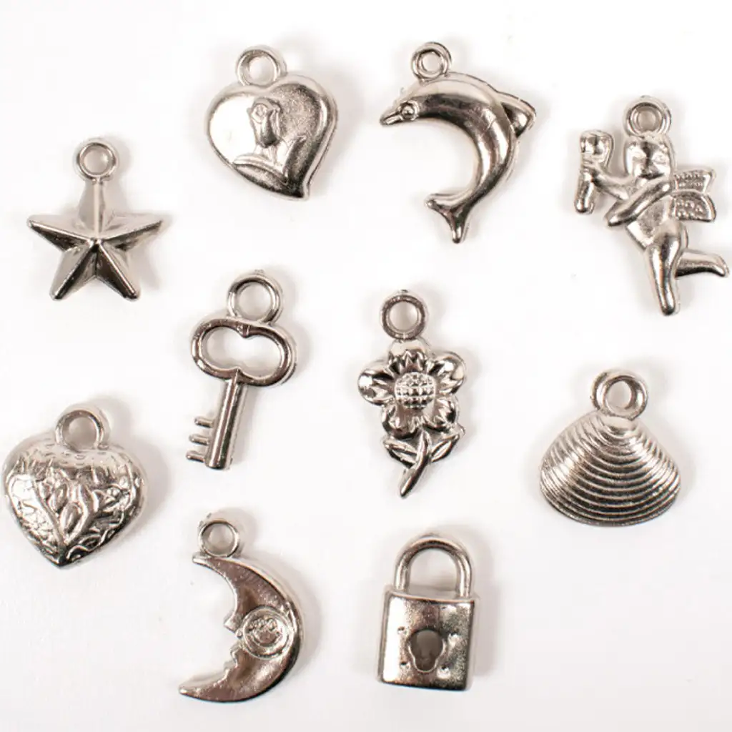 Rôznorodé tvary – napríklad kľúč, hviezda, srdce, delfín, mesiac alebo kvet – poskytujú možnosť, aby každé dielo bolo jedinečné a osobné. Či už chcete vytvoriť priateľské náramky, náhrdelníky pre šťastie, alebo vlastné navrhnuté šperky, tieto prívesky poskytujú skvelý základný materiál.