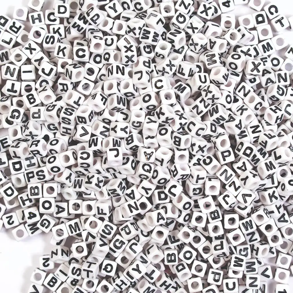 Farba perál bielo-čierna a vzor s písmenami sú univerzálne použiteľné, či už ide o náramky, náhrdelníky alebo dokonca kľúčenky. Rozmery perál (6,5 x 6,5 x 6,5 mm) sú ideálne pre ľahkú manipuláciu a otvor s priemerom 3,5 mm umožňuje ľahké vloženie niť.