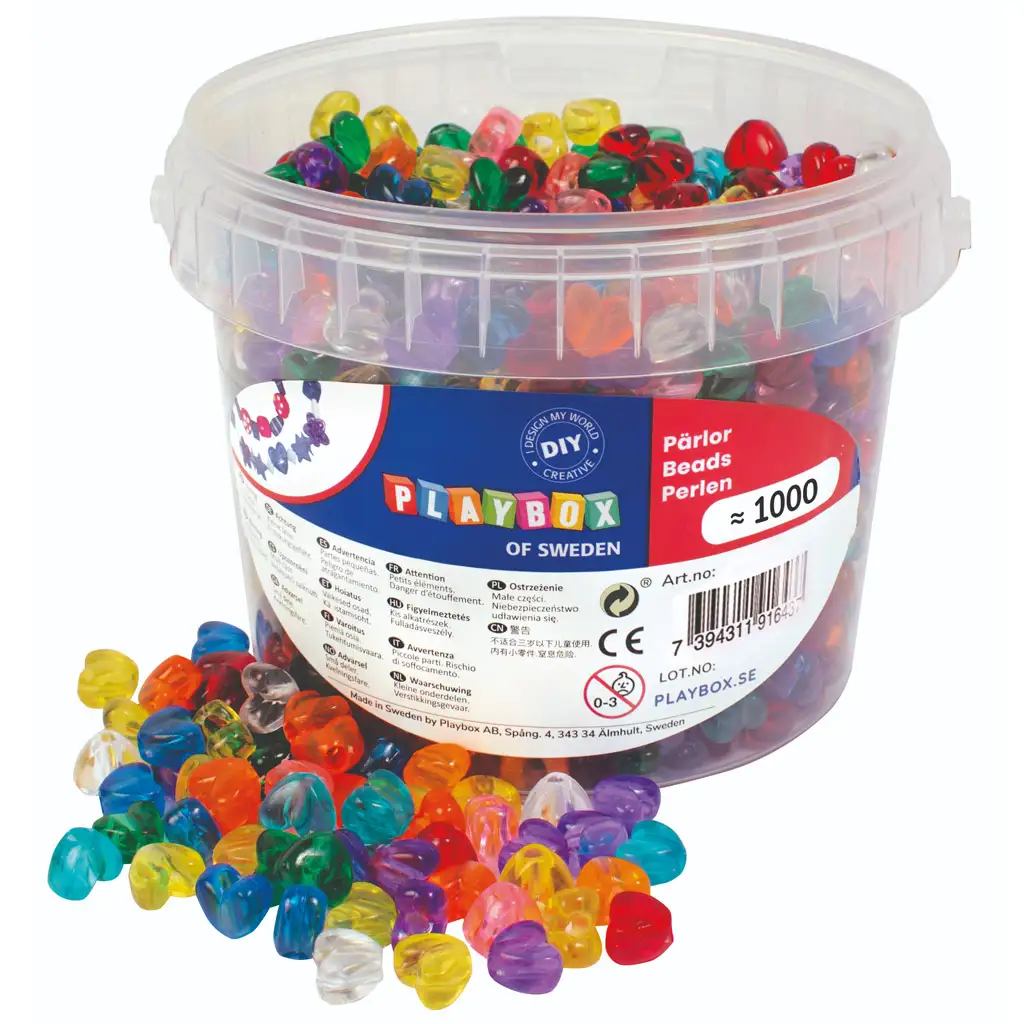 PlayBox: Sada farebných korálok vo forme srdiečok, 1000 ks