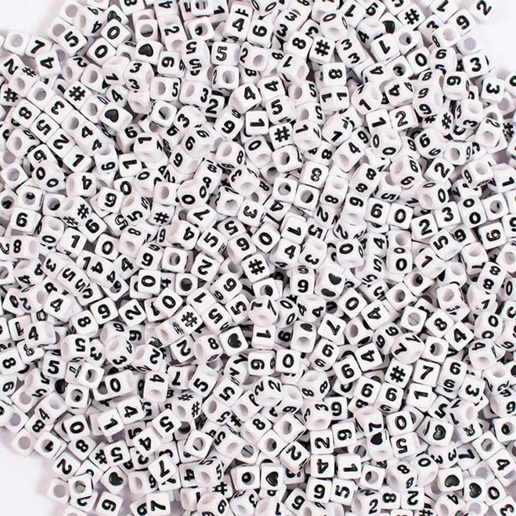 Táto sada 300 plastových korálok je perfektným nástrojom pre tých, ktorí chcú kreatívne spájať zábavu a učenie. Každá korálka má veľkosť 6,5 x 6 mm, na bielej podklade s čiernymi, ľahko čitateľnými číslami a symbolmi, ako je napríklad hashtag alebo percentuálny znak.
