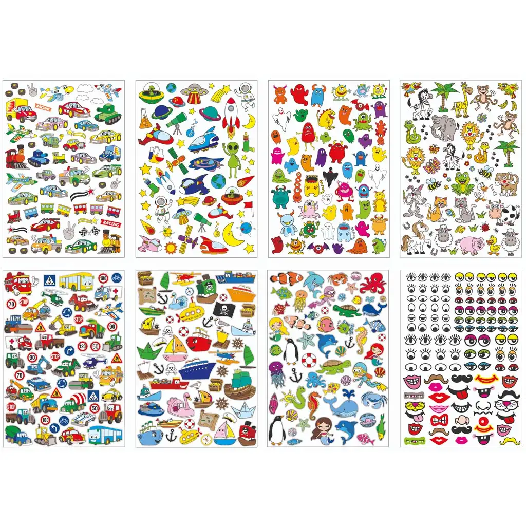 Táto sada nálepiek s motívmi vozidiel je skutočne zábavným a univerzálnym doplnkom pre remeselné práce. Balenie obsahuje osem listov, každý list obsahuje 500 rôznych motívov nálepiek. Tieto nálepky zobrazujú všetky druhy vozidiel, či už ide o vtipné vozidlá, strašidelné príšery alebo roztomilé zvieratá.