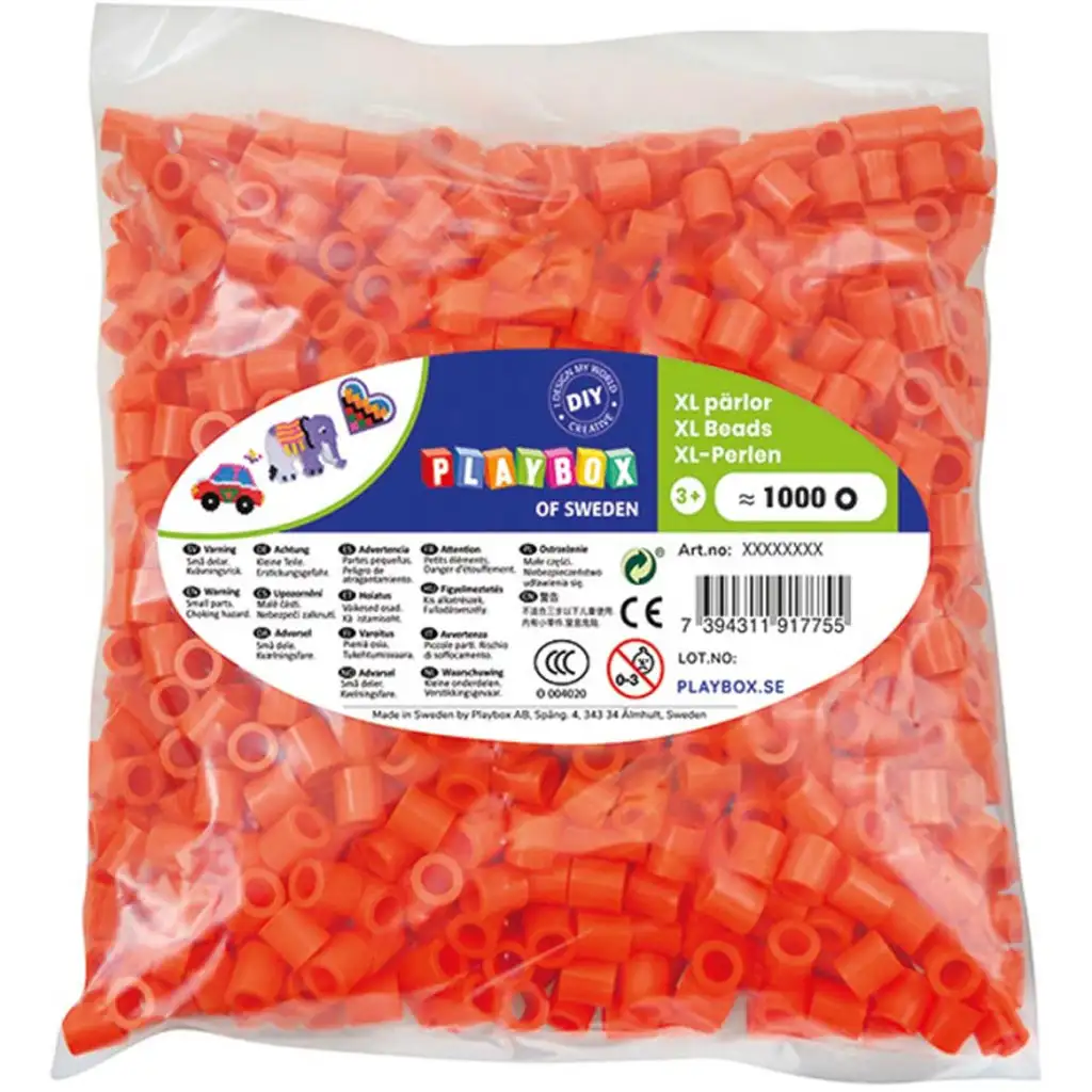 PlayBox: XL 9 mm midi zažehľovacie korálky, 1000 ks v balení, oranžová farba