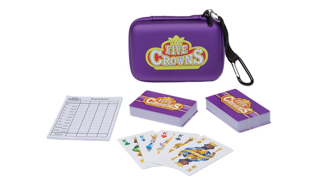 Táto súprava obsahuje základné komponenty pre viacero kôl kartovej hry Päť korún, v ktorej je cieľom hráčov dosiahnuť čo najnižší počet bodov, zatiaľ čo zvyšujú skóre svojich súperov vytváraním rôznych kníh a sérií. V každom kole jedna karta funguje ako žolík, čo výrazne ovplyvňuje, aké karty je možné vyložiť, takže hra zostáva vždy nepredvídateľná a vzrušujúca. Súprava obsahuje 116 hracích kariet, pravidlá hry, niekoľko bodovacích hárkov a tiež mäkké cestovné puzdro, ku ktorému patrí aj karabína, takže ho možno ľahko pripevniť k batohu alebo príručnej batožine. Táto hra je ideálnou voľbou na rodinné alebo priateľské stretnutia, cestovanie a zaručene poskytne zábavný zážitok pre všetky vekové kategórie.