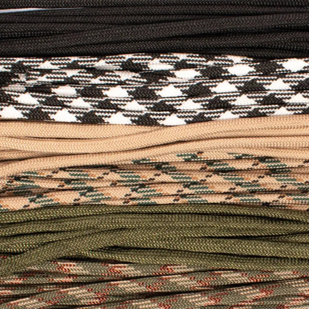 Táto odolná sada uzlovacích lán je ideálnou voľbou pre všetky kreatívne a praktické použitia. Balenie obsahuje šesť rôznych šnúr v maskovacích farbách, z ktorých každá má dĺžku 2,6 metra a hrúbku 2,4 mm. Vojenské štýlové farby – čierna, hnedá, zelená a vzorované kombinácie – sú perfektné pre prežitie a outdoorové aktivity, remeselné projekty, náramky, kľúčenky a iné uzlovacie techniky.