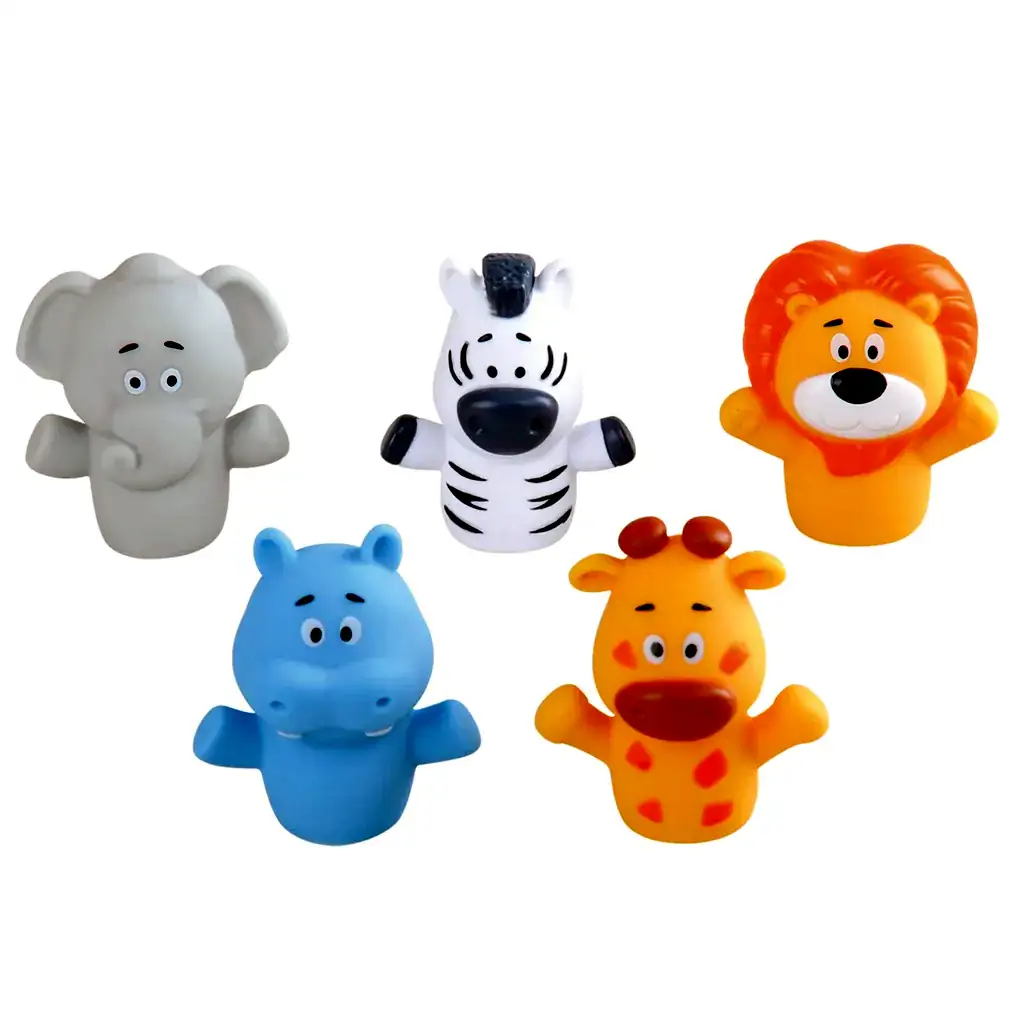 5dielna sada prstových bábok so safari zvieratkami (slon, lev, žirafa, hroch, zebra)