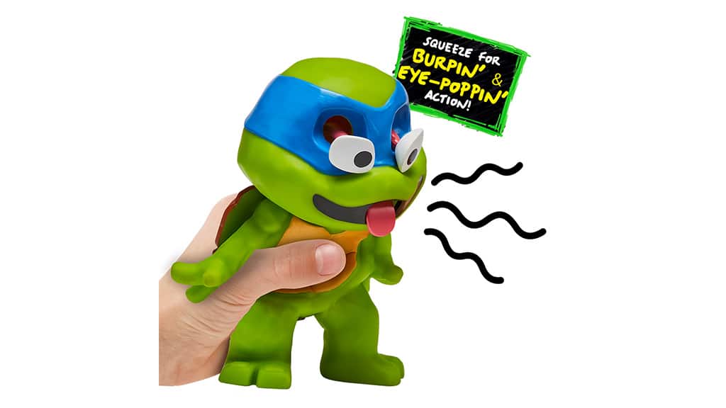 Deti môžu stlačiť bruško, aby videli vypúlené oči a vyplazený jazyk, čo poskytuje naozaj vtipný a pôsobivý zážitok. Táto hračka nie je len zábavná, ale rozvíja aj jemnú motoriku a zručnosť rúk. Špeciálny pohyb zakaždým vyvoláva smiech a radosť u detí, pričom ich zároveň podnecuje ku kreatívnej hre.Toto je štíhly, zelený, grgajúci tím nindžov! Tieto zberateľské figúrky sú ideálne pre fanúšikov TMNT, ktorí majú radi vtipné, zábavné akcie. Keď deti stlačia bruško korytnačiek, môžu vidieť, ako ich obľúbeným hrdinom vyvalia oči a jazyk im vystrčí von. Každá figúrka je približne 14 cm vysoká, takže je ideálnym spoločníkom na hranie aj na cestách. Ak si deti radšej nechajú svojich polopancierovaných hrdinov doma, tieto zberateľské hračky skvele vyzerajú aj na poličke, pretože samostatne stoja. Rodičom sa môže páčiť, že tieto cenovo dostupné hračky ponúkajú zábavný zážitok z grgania, ale bez nepríjemných pachov. Tieto figúrky nie sú len zábavné, ale podnecujú aj kreatívnu hru a môžu byť skvelým darčekom na každú príležitosť.