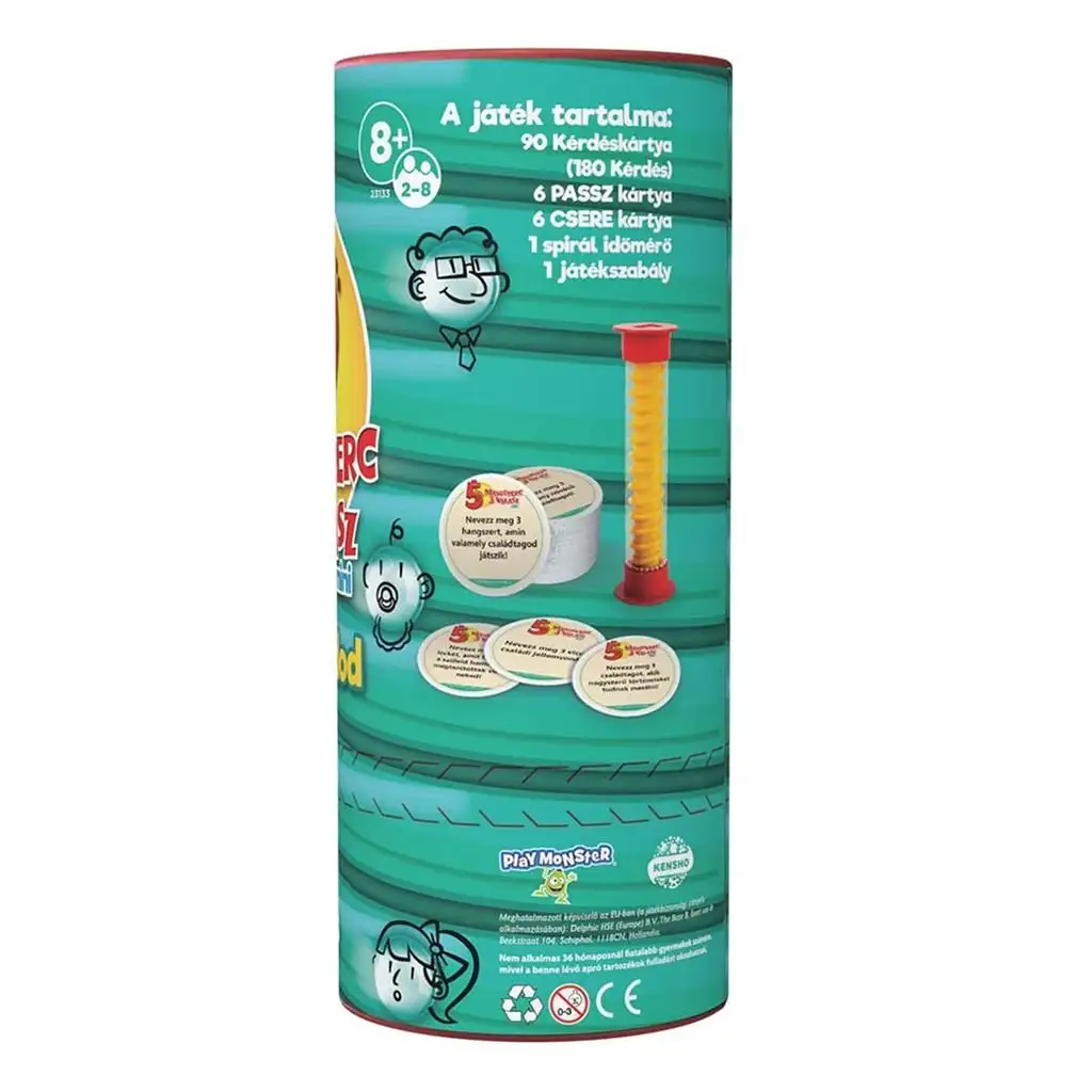 S touto hrou môžete ukázať, ako dobre poznáte svojich rodinných príslušníkov, pretože obsahuje úlohy týkajúce sa príbuzných. S mini verziou 5 Sekúnd 3 Odpovede môžete otestovať seba a navyše ju ľahko vziať so sebou aj na cestách. 5 Sekúnd 3 Odpovede Mini – Rodinné vydanie je skutočná rodinná stolová hra. Na kartách sú otázky týkajúce sa rodinných príslušníkov. Hráč má v každom kole päť sekúnd na to, aby dal tri odpovede na položenú otázku, čo môže zmeniť len výmena alebo pasová karta. Hra obsahuje špirálový časovač, ktorý môžete otočiť ako presýpacie hodiny, keď je na rade ďalší hráč. V krabici sa nachádza 90 obojstranných otázkových kariet, takže sa môžete stretnúť s celkovo 180 výzvami.