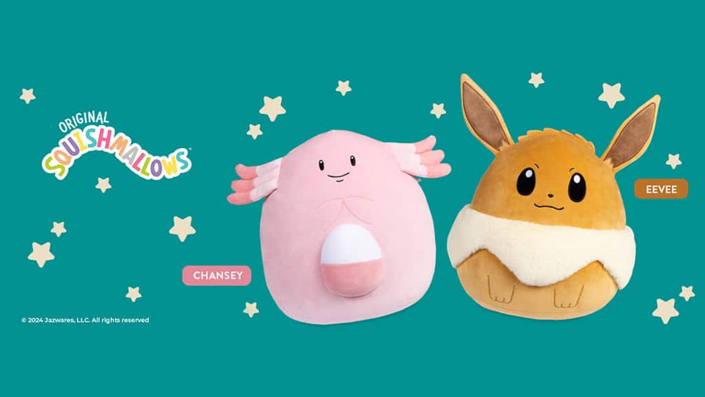 Musíš chytiť všetky — v plyšovej podobe!Najnovšie Pokémon Squishmallows, Eevee a Chansey, dorazili. Dve postavy z regiónu Kanto sa pridávajú k verziám Squishmallows, ako sú Pikachu, Snorlax, Fuecoco, Piplup a mnoho ďalších v ponuke Pokémon Center. Tréneri a fanúšikovia Pokémona si teraz môžu predobjednať obe!