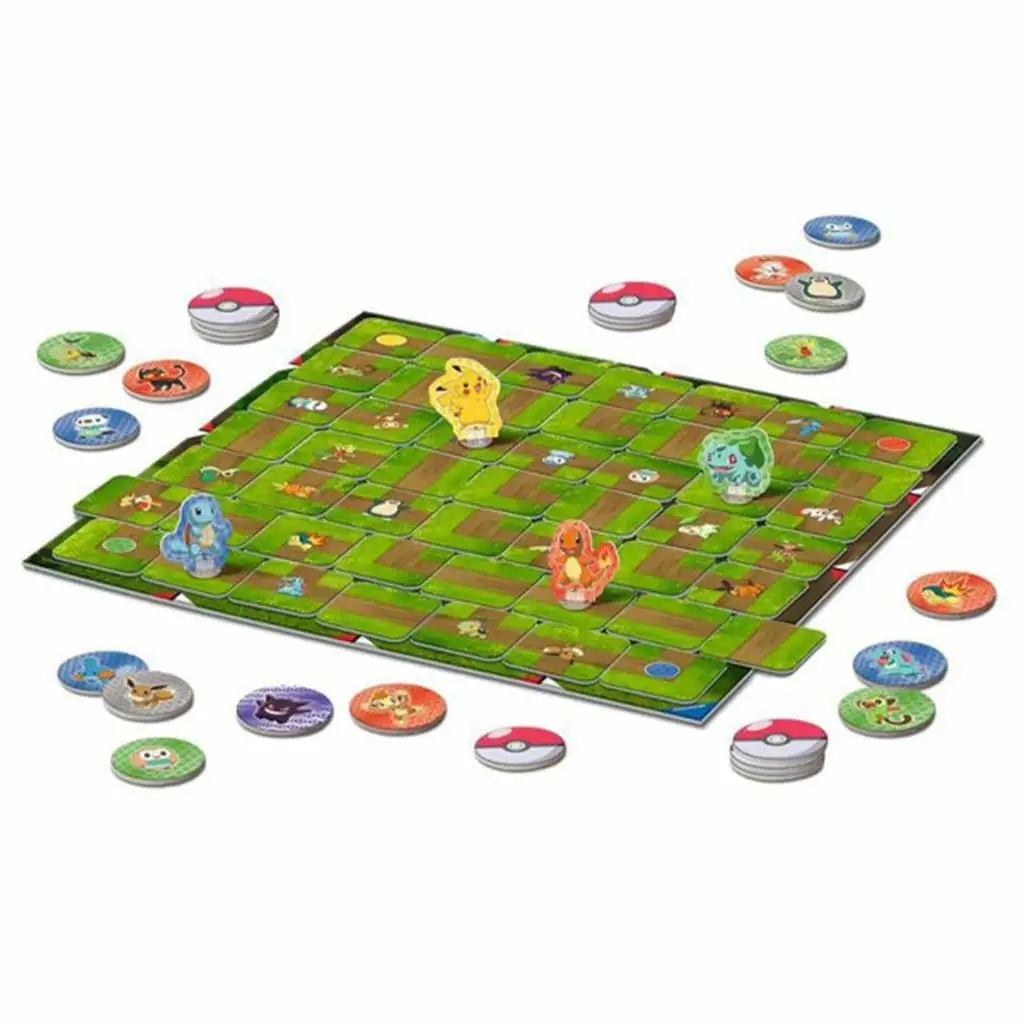 - Obsahuje: 1 hernú dosku, 4 Pokémon figúrky, 4 držiaky na postavy, 34 labyrintových kariet, 24 Pokéloptových žetónov