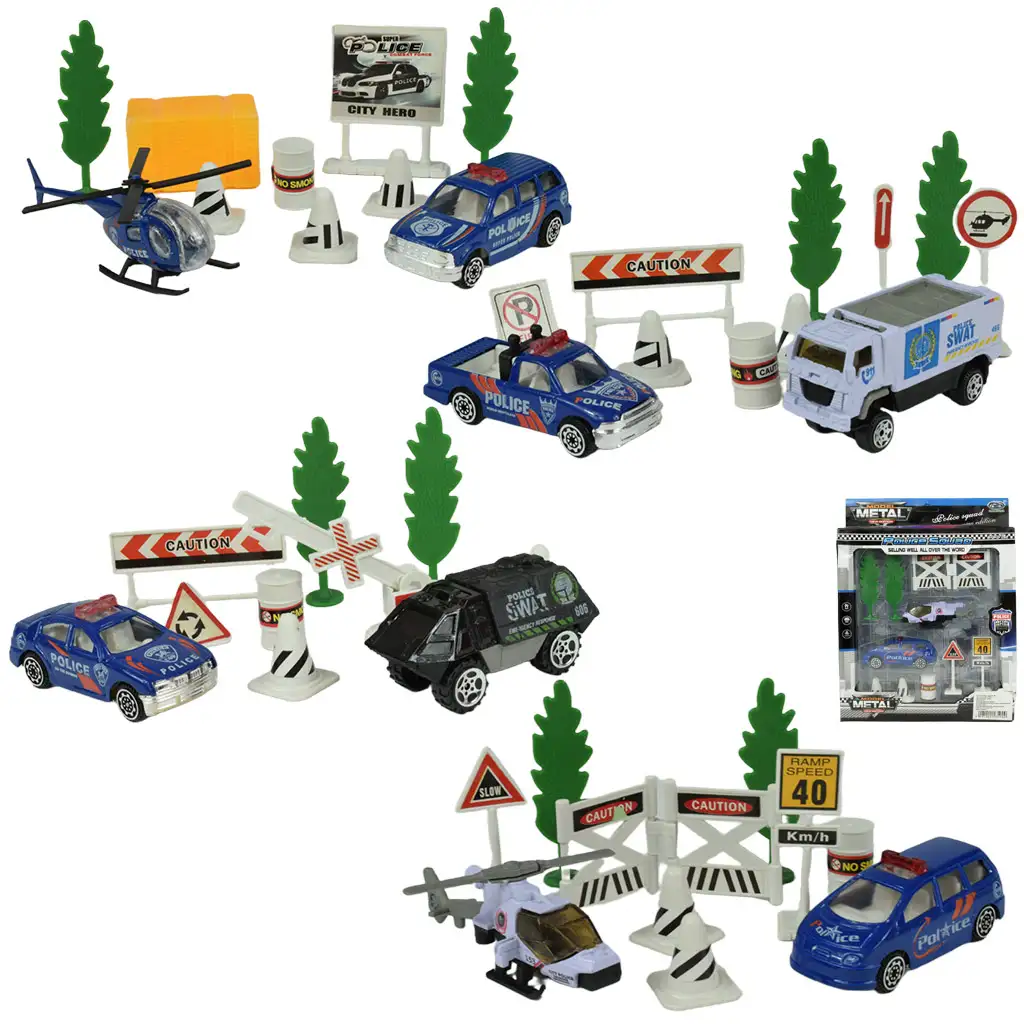 Police Set: Súprava policajných vozidiel a doplnkov v rôznych variantoch 1ksPolice Set: Súprava policajných vozidiel a doplnkov v rôznych variantoch 1ks