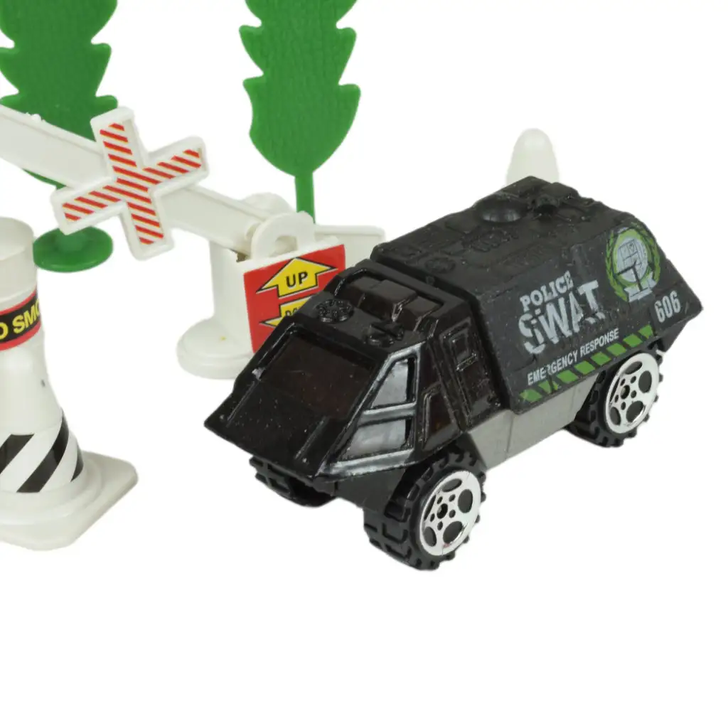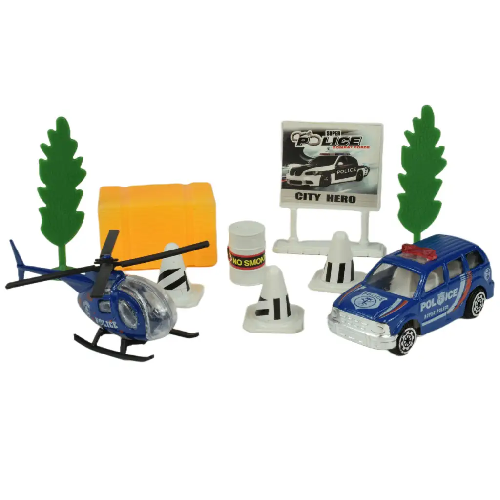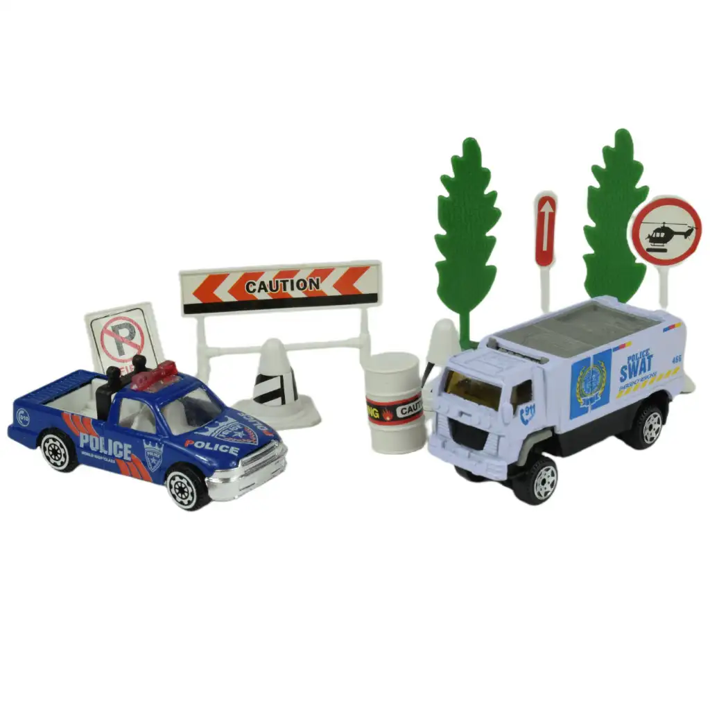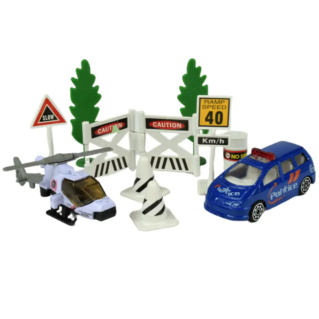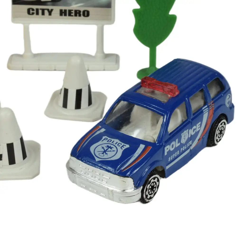 Policajti každodenne vykonávajú mimoriadne dôležitú prácu, zatiaľ čo sa po uliciach pohybujú s blikajúcimi svetlami a sirénami. Ak je tvoj syn veľkým fanúšikom tohto hrdinského povolania, potom je táto sada policajných áut fantastickou voľbou pre neho. Táto sada obsahuje rôzne policajné autá, každé s rôznymi charakteristikami a doplnkami, ktoré robia hru ešte vzrušujúcejšou. Medzi doplnkami nájdete stromy, dopravné značky, bóje, ako aj ploty označujúce uzavreté oblasti, ktoré ešte viac podnecujú predstavivosť a kreativitu tvojho dieťaťa.