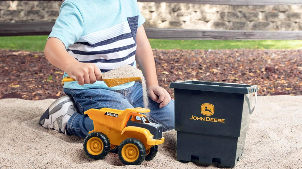 Táto trojdielna súprava obsahuje lopatu, vedro a vozidlo s tematikou John Deere. Súprava je dostupná v dvoch štýloch: Farm, ktorá má klasickú zeleno-žltú farebnú kombináciu a traktor, alebo Stavba, ktorá má žlto-sivú farebnú kombináciu a sklápač. Obe doplnky, lopata a vozidlo, sú dostatočne malé, aby sa zmestili do vedra.