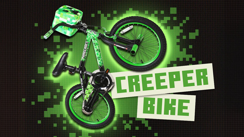 Deti, ktoré prechádzajú z 12- alebo 16-palcových bicyklov; fanúšikovia Minecraftu, ktorí hľadajú dobrodružstvo v skutočnom svete.Tento bicykel má jedinečné Minecraft grafiky na ráme, vidlici, chrániči reťaze a pomocných kolesách a prichádza s odnímateľnou plyšovou hlavou Creepera na riadidlách. Má nastaviteľné sedadlo, odnímateľné pomocné kolesá a predné a zadné brzdy.