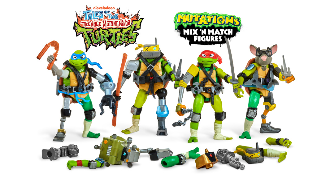 Deti môžu miešať a spájať prvky — vrátane rúk, nôh, hláv, zbraní a mnoho ďalších — medzi akčnými figúrkami postáv z televízneho seriálu Dobrodružstvá Ninja korytnačiek. Každá 4,5-palcová figúrka prichádza s príslušenstvom, ktoré je odnímateľné a môže byť umiestnené na inú postavu. Kolekcia obsahuje postavy Leonarda, Raffaella, Michelangela, Donatella, majstra Splintera a Bishopa.