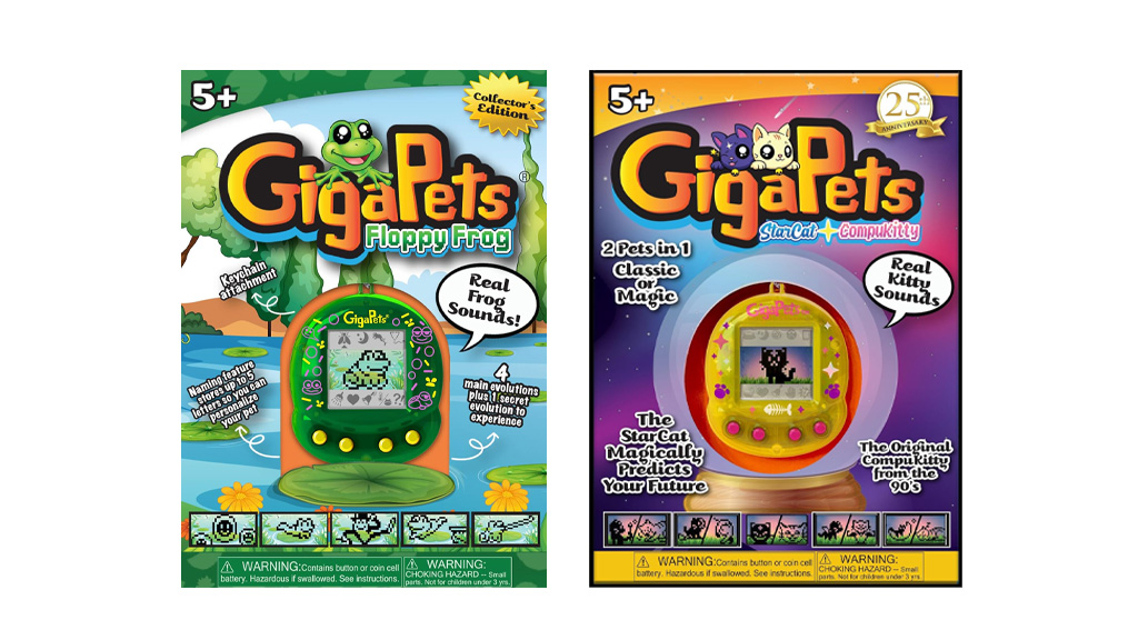 90. roky sa vrátili — presnejšie, hry inšpirované 90. rokmi. Top Secret Toys spustili sériu s názvom "GigaPets", takže deti môžu vychovávať digitálne domáce zvieratá, rovnako ako to robili ich rodičia alebo súrodenci v 90. rokoch. Tieto hry nielenže poskytujú nostalgický zážitok, ale tiež rozvíjajú zmysel pre zodpovednosť a starostlivosť u detí. GigaPets ponúkajú rôzne zvieratá, ako sú psy, mačky a exotické zvieratá, takže každý si môže nájsť to najobľúbenejšie. Vďaka novej technológii sú tieto digitálne domáce zvieratá ešte interaktívnejšie a zábavnejšie ako kedykoľvek predtým.Existujú štyri nové virtuálne zvieratká, vrátane Bit Bunnies, Floppy Frog, Pixie a StarCat/CompuKitty. Každý GigaPet sa zmestí do ruky dieťaťa (alebo tvojej) a je vybavený kľúčenkou. Obrazovky sú obklopené priehľadnými trblietavými krytmi, štyrmi tlačidlami a ikonami, ktoré zodpovedajú téme digitálneho zvieratka.