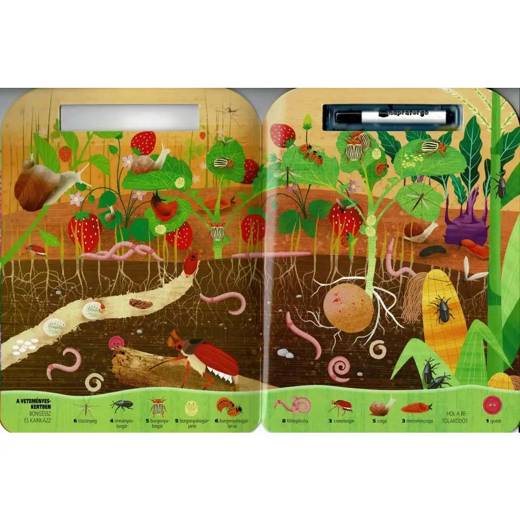 Kniha Prehliadaj a zakrúžkuj! – Kniha o chrobákoch pozýva deti na vzrušujúcu objavnú cestu do sveta hmyzu. Podstata publikácie je jednoduchá, no veľmi motivujúca: nájdi malé chrobáky a iný hmyz v farebných, detailných ilustráciách a potom ich zakrúžkuj priloženou zotierateľnou fixkou! Ak chceš, jedným ťahom môžeš všetky označenia zmazať, takže sa do dobrodružstva môžeš pustiť znova a znova.