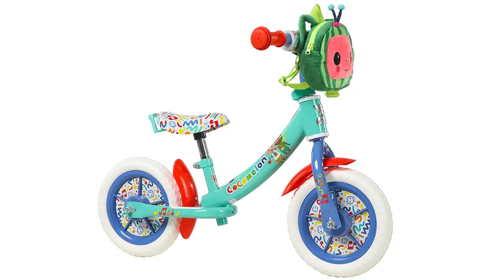 Bežecký bicykel CoComelon s 10-palcovými kolesami od spoločnosti Dynacraft bol navrhnutý tak, aby pomáhal deťom cvičiť ich rovnováhu, skôr než by prešli na bicykel s pedálmi. Bicykel má 10-palcové kolesá (ktoré sú ideálne pre deti s výškou približne 31-39 palcov), odnímateľnú riadítka s taškou, EVA pneumatiky, ktoré nepraskajú, a veselú grafiku JJ a Codyho. Prichádza čiastočne zmontovaný a jeho úplné zloženie trvá približne 20 minút (vyžaduje sa montáž dospelým).