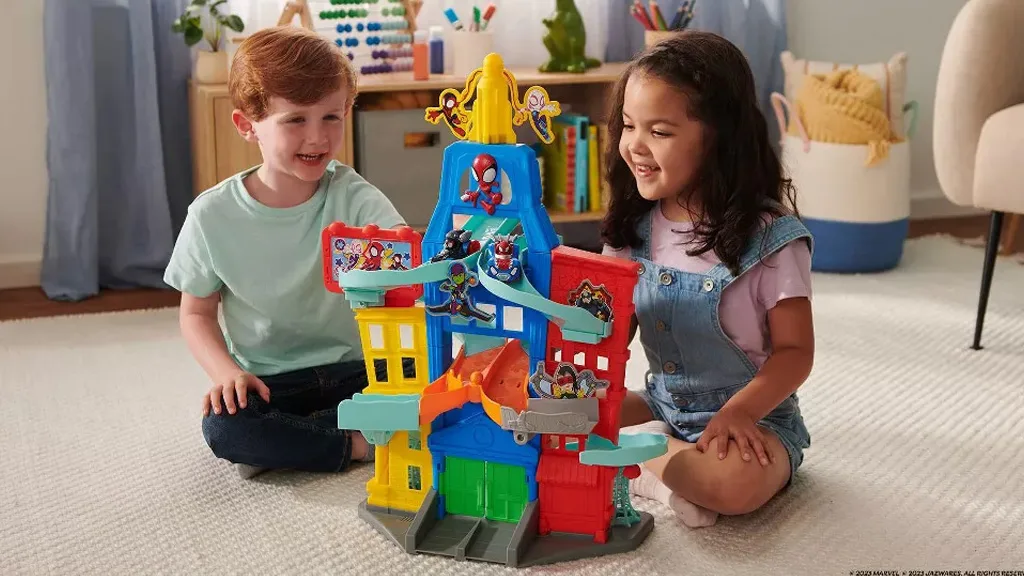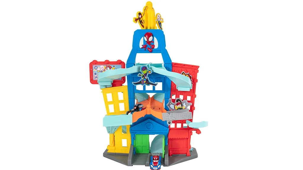 Deti môžu pomôcť rodičom pri zostavovaní súpravy hračiek, ale nakoniec ju musí poskladať dospelý – je ľahká na montáž a nie sú potrebné žiadne nástroje. 24-palcová vysoká súprava pretekárskej dráhy Spidey a jeho priatelia nie je určená pre hru s autami, ale deti ju môžu ľahko prenášať z jednej miestnosti do druhej, ak je to potrebné. Nie je tu špeciálne úložisko pre vozidlá, ale deti ich môžu na konci hry umiestniť za obchodné fronty.