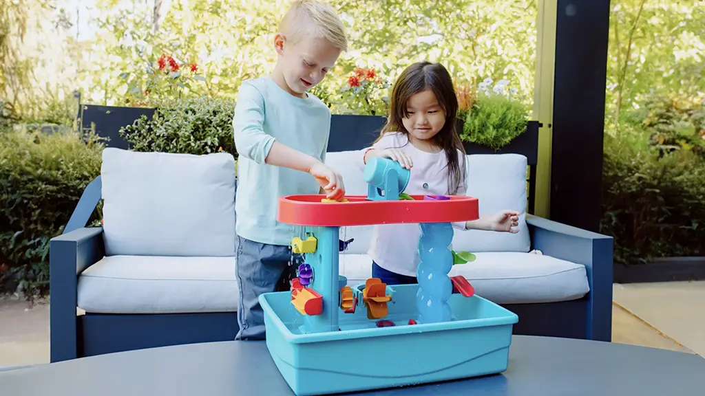 Tento inovatívny vodný stôl obsahuje nádrž na vodu s vekom, hornú platformu, ktorá vytvára dve úrovne pre hru, a rúrky. Obsahuje aj 15 doplnkov, medzi ktorými je pohár, tri loďky a 11 vodných spojok pre prispôsobené nastavenie. Môže sa používať vnútri alebo vonku, čím ponúka nekonečné možnosti pre vodné dobrodružstvá, kdekoľvek by si deti chceli hrať.Táto vodná hra je dokonalá pre akúkoľvek príležitosť na hranie! Je zábavná a vzdelávacia, poskytuje dynamický a interaktívny zážitok z vodnej hry. Všetky súčasti sa zmestia do úložného priestoru, čím zabezpečuje upratané hracie prostredie a ľahko sa prenáša. Hra je tiež vynikajúca pre senzorické hry a rozvoj jemnej motoriky detí. Pre rodičov je tiež ľahko montovateľná bez akýchkoľvek komplikácií.