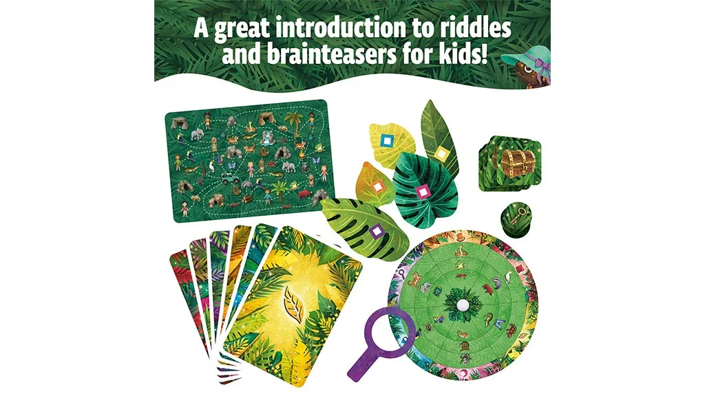 Hra má významné vývojové výhody, povzbudzujúce deti, aby spolupracovali na riešení problémov a komunikácii. Rodičia môžu rozšíriť vzdelávací nástroj svojich detí tým, že ich oboznámia s unikátnymi džungľovými zvieratami, vrátane tukánov, makakov, kakadu a mnohých ďalších. Džungľové hádanky ponúkajú zaujímavé interaktívne typy hádaniek, vrátane labyrintov, hľadacích úloh a rozpoznávania zvierat. Hra v každom kole obsahuje viacero kombinácií hádaniek a pokladov, čím zabezpečuje skvelú opätovnú hrateľnosť. Hádanky sú zábavné a vhodné pre mladých dobrodruhov, navyše balenie hry obsahuje tipy na riešenie hádaniek.