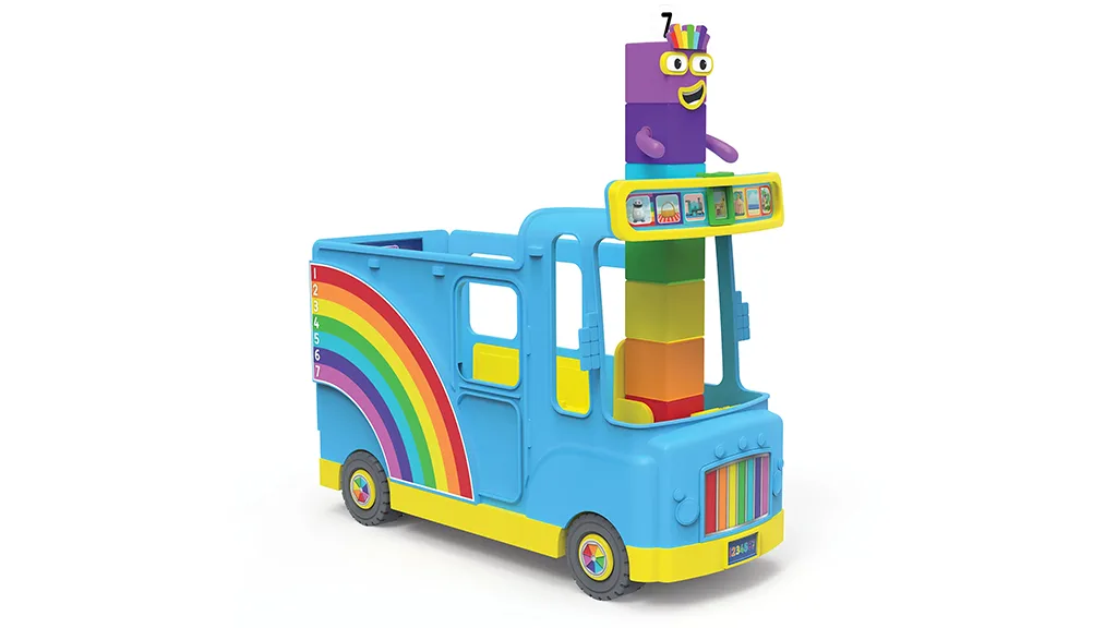 Autobus je plný interaktívnych hier: Na valivých kolesách sa otvára zadná časť, aby vytvorila dúhu a odhalila tabuľu pre skákaciu školu pre deti na počítanie. Je tam dosť miesta, aby si deti mohli vziať so sebou akúkoľvek ďalšiu figúrku Numberblocks, ako aj akúkoľvek akčnú figúrku, ktorú by chceli, aby sa pridala k zábave.