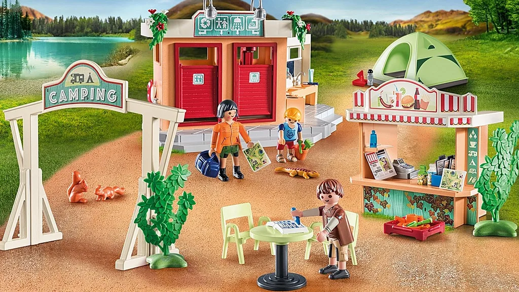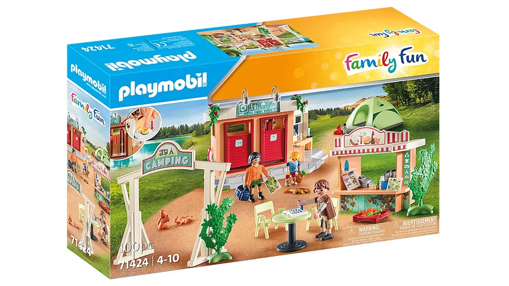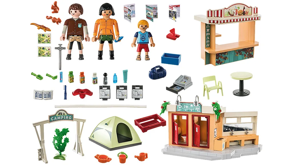 Táto sada obsahuje všetko, čo deti potrebujú na zábavnú dovolenku pod holým nebom. Táborovisko umožňuje užívať si radosti z kempovania bez toho, aby opustili domov. Deti si môžu vytvoriť svoje vysnívané kempovanie so 100-dielnou sadou troch figúrok Playmobil, stánkom, stolom, stoličkami a ďalšími doplnkami súvisiacimi s kempovaním.