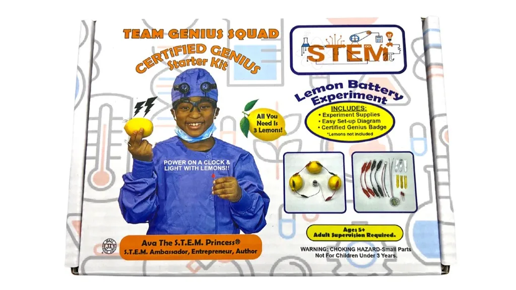 Sada na experimentovanie s elektrinou Lemon Electricity STEM obsahuje štyri krokodílie svorky, tri kusy medi, tri kusy zinku, jeden kábel s lampou, dve žiarovky a jeden hodiny. Mladí vedci môžu pomocou sady objaviť, ako môžu vytvoriť elektrinu z citrónov.