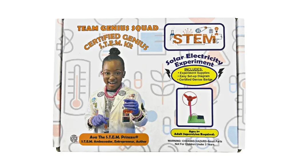 Každá sada obsahuje nástroje, pre deti pripravené, ilustrované návody, ako aj certifikát Certified Genius. V sade Solar Electricity STEM Experiment Kit deti používajú plastový ventilátor, motor a plastové puzdro, plastový stojan, ako aj solárny panel s cieľom vytvoriť ventilátor poháňaný solárnou energiou.