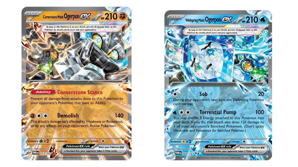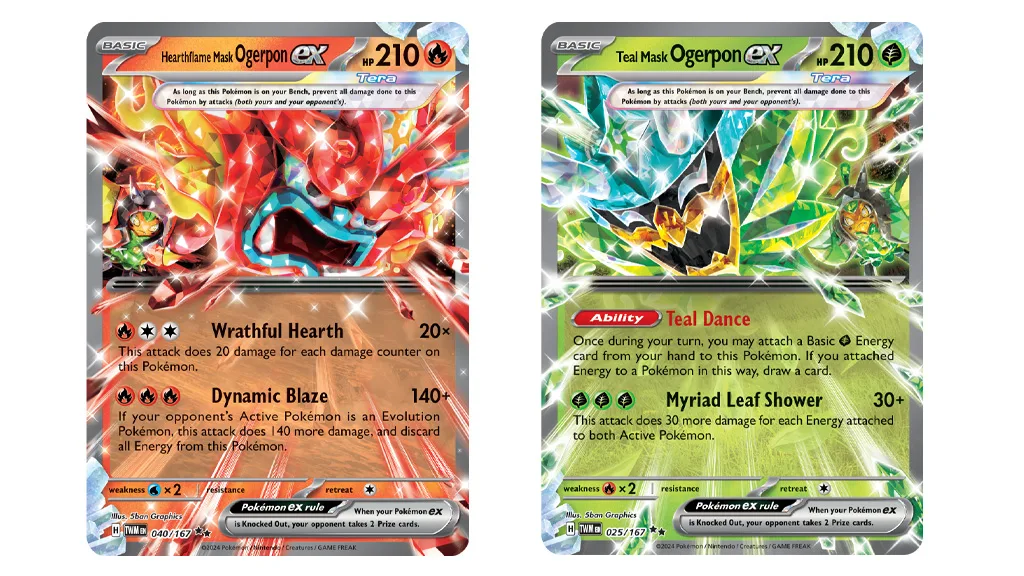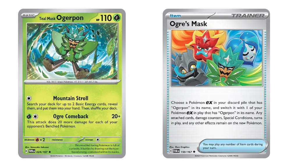 Debut Ogerpona v Pokémon TCG je veľká udalosť a Pokémon Co. International to oslavuje príslušne: Šesť nových kariet z doplnku Scarlet & Violet — Twilight Masquerade bolo odhalených. Hráči sa nemôžu dočkať, kedy pridajú karty Teal Mask Ogerpon ex, Hearthflame Mask Ogerpon ex, Wellspring Mask Ogerpon ex, Cornerstone Mask Ogerpon ex, Teal Mask Ogerpon a Ogre’s Mask do svojich bojov.