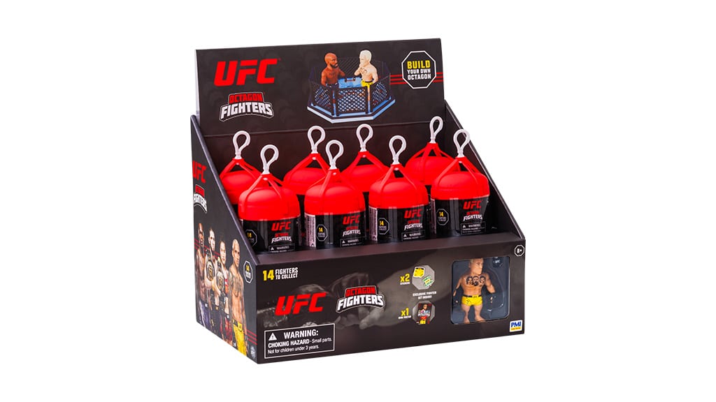 Každá prekvapivá kapsula ukrýva jedného z 14 mini UFC bojovníkov. Deti v nej navyše nájdu doplnky, nálepku, mini plagát a prepojiteľný podstavec, pomocou ktorého si môžu postaviť Oktagon. Táto hračka nie je len zábavná, ale rozvíja aj kreativitu a predstavivosť, zatiaľ čo deti objavujú svojich obľúbených bojovníkov a môžu si vytvoriť vlastnú UFC arénu.
