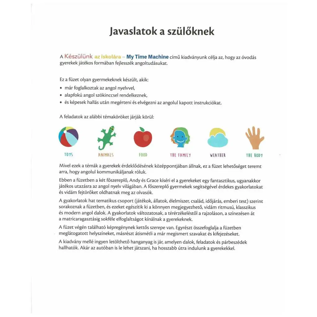 Publikácia "Pripravujeme sa na školu - po anglicky" je ideálnou voľbou pre deti, ktoré sa už zaoberali anglickým jazykom, majú základnú anglickú slovnú zásobu a chcú si hravou formou ďalej rozvíjať svoje jazykové znalosti. Tento zošit pomáha predškolákom ľahko si osvojiť základy anglického jazyka, zatiaľ čo sa prostredníctvom rôznych vzrušujúcich dobrodružstiev zoznamujú s novými slovami a výrazmi.