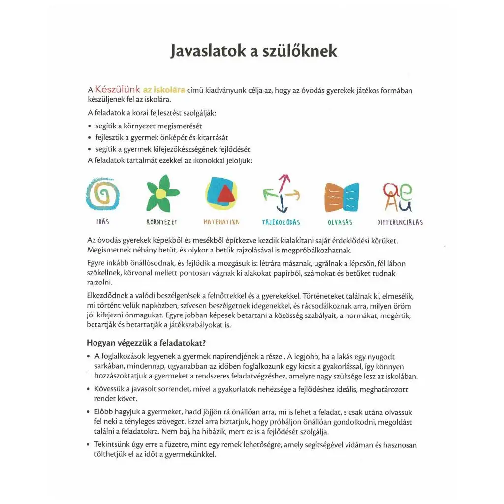Pre rodičov publikácia ponúka užitočné rady, ako integrovať tieto cvičenia do každodennej rutiny detí. Úlohy sa postupne sťažujú, aby krok za krokom uviedli deti do sveta školských požiadaviek. Týmto spôsobom môžu deti začať svoju školskú kariéru sebavedomo a pripravené.