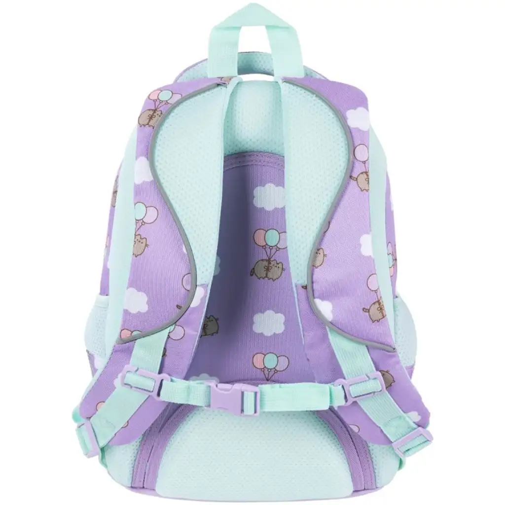 Ergonomický školský batoh Pusheen Violet BPL58 je ideálnou voľbou pre každého malého školáka, ktorý je fanúšikom Pusheen a má rád roztomilé a praktické doplnky. Batoh je ozdobený krásnou fialovou farebnou kombináciou s mätovozelenými detailmi a veselou grafikou známej mačičky Pusheen, ktorá lieta s balónikmi medzi oblakmi. Hviezdičkové ťahače zipsov a ozdobné motívy oblakov ešte viac zvýrazňujú čaro batohu a zároveň mu dodávajú moderný a veselý vzhľad.