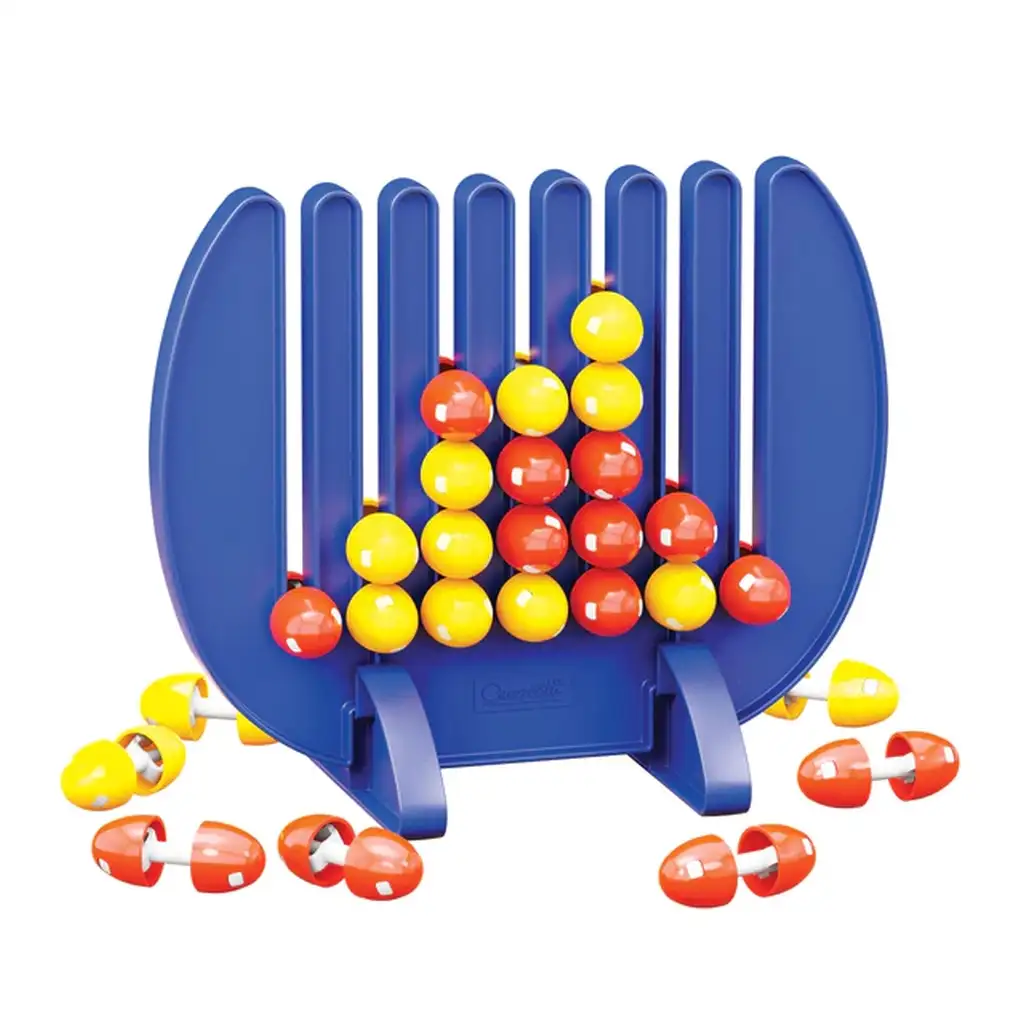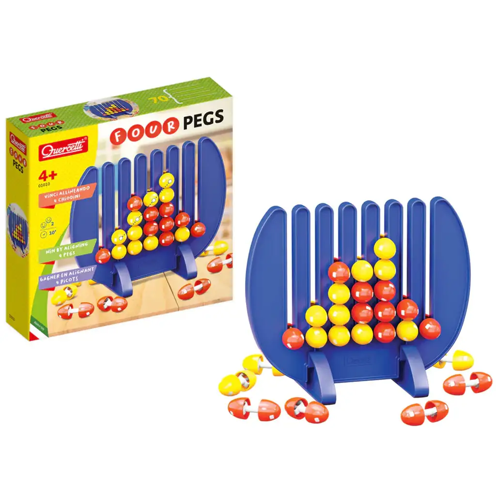 Spoločenská hra Quercetti Štyri v rade ponúka vzrušujúci a zábavný herný zážitok pre celú rodinu. Hra je založená na modrom stojane pripomínajúcom "hrebeň", do ktorého môžu hráči vkladať malé kolíky. Tieto kolíky sú dobre viditeľné z oboch strán a bezpečne sa umiestňujú na dosku, aby nevypadli.