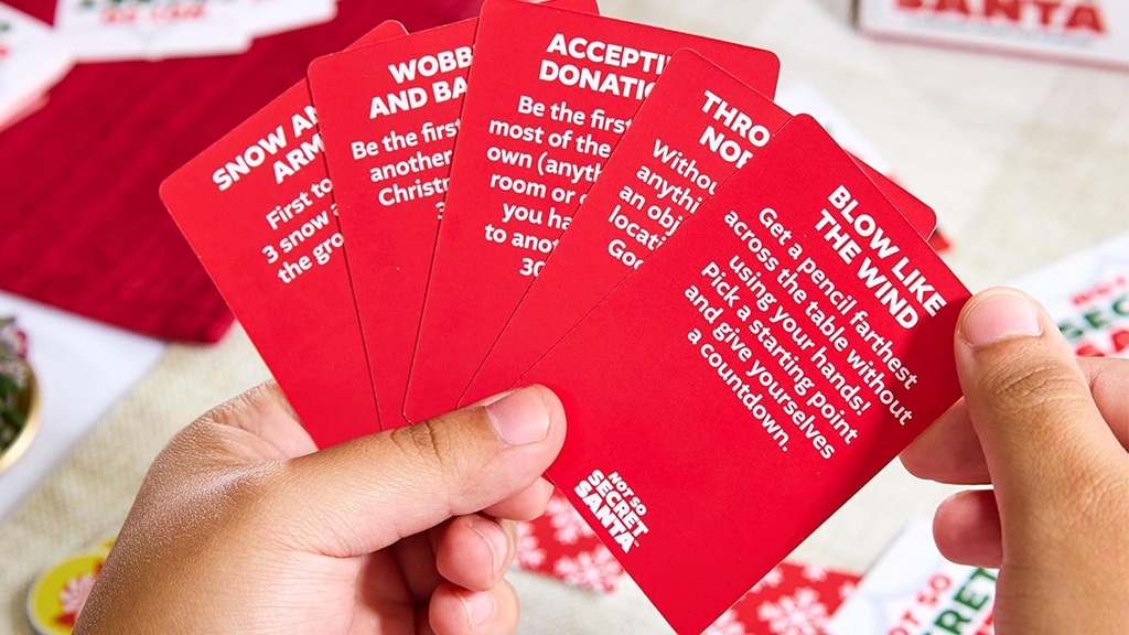 Hráči môžu darovať rôzne výzvy svojim protivníkom v vianočnej tematickej hre Not So Secret Santa. Táto hra poskytuje príležitosť kreatívnym a zábavným spôsobom otestovať našich priateľov a rodinných príslušníkov, pričom zároveň zvyšuje sviatočnú atmosféru. Výzvy môžu byť jednoduché alebo zložité, v závislosti od toho, ako veľmi chceme sťažiť úlohu druhému. Takéto typy hier nie sú len zábavné, ale tiež pomáhajú posilňovať spoločenské vzťahy, pretože spoločné zážitky a smiech približujú ľudí k sebe.Relatable sviatočné tematické hry sú ideálne na rodinné a priateľské stretnutia (Merry Dissmas je stále jedným z najväčších hitov na sviatkoch mojej rodiny) — a táto hra je zaručený úspech. Vyhnite sa hádkam a trápnym rozhovorom s trochou priateľskej súťaživosti … a trochou hravého doberania. Navyše darčekové štítky a karty sú rozkošne roztomilé s dizajnom Santa Clausa a darčekových štítkov.