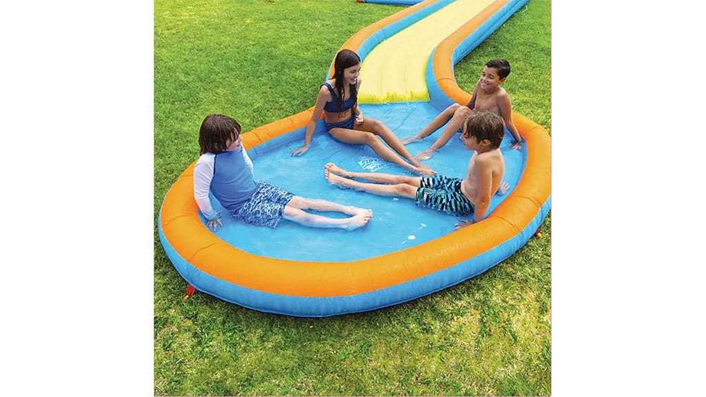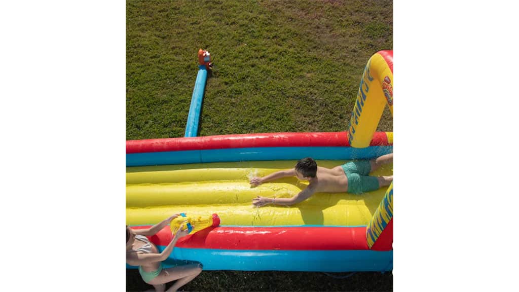 Tento 8,5 metra dlhý Slip N Slide tobogan je ideálnou voľbou, aby sa deti ochladili počas letných horúčav, pričom sa aktívne hýbu. Tobogan je vybavený vodným delom, ktoré neustále rozprašuje vodu, čím robí hru ešte zábavnejšou a šmykľavejšou. Balenie obsahuje aj nafukovaciu pumpu, vďaka ktorej sa tobogan jednoducho postaví, a na konci sa nachádza bazénik, kde deti môžu bezpečne pristáť a šantiť. Tento tobogan poskytuje hodiny zábavy a oddychu pre celú rodinu počas horúcich letných dní.