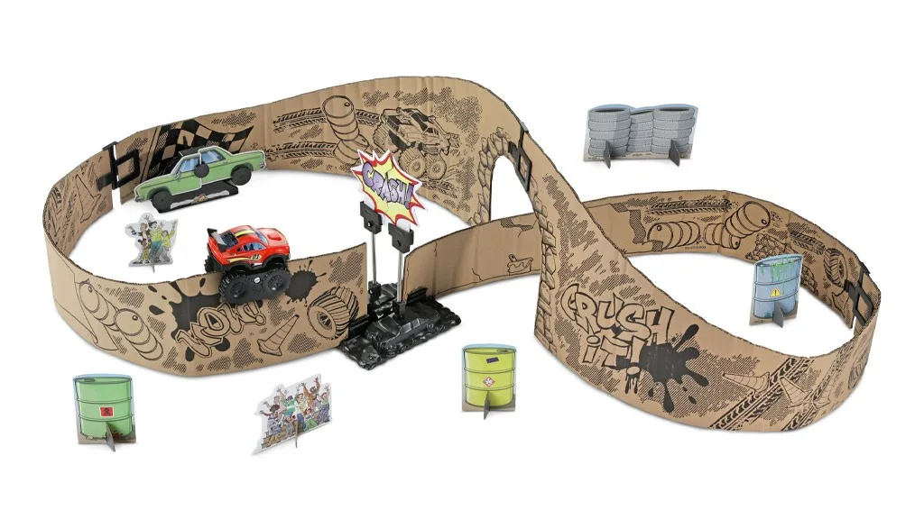 S novou sériou Turbo Edge Riders môžu deti stavať vzrušujúce dráhy pre kaskadérske kúsky z materiálov, ktoré by inak skončili ako odpad. Autá a vozidlá, ktoré nájdete v týchto nových súpravach, sa preháňajú po starom kartóne a vykonávajú ohromujúce kúsky okolo bežných predmetov. Či už chce dieťa súťažiť v džungli plnej dinosaurov alebo vystúpiť do výšok v helikoptére, tieto súpravy podnecujú ich kreatívne myslenie pri navrhovaní vlastných dráh.