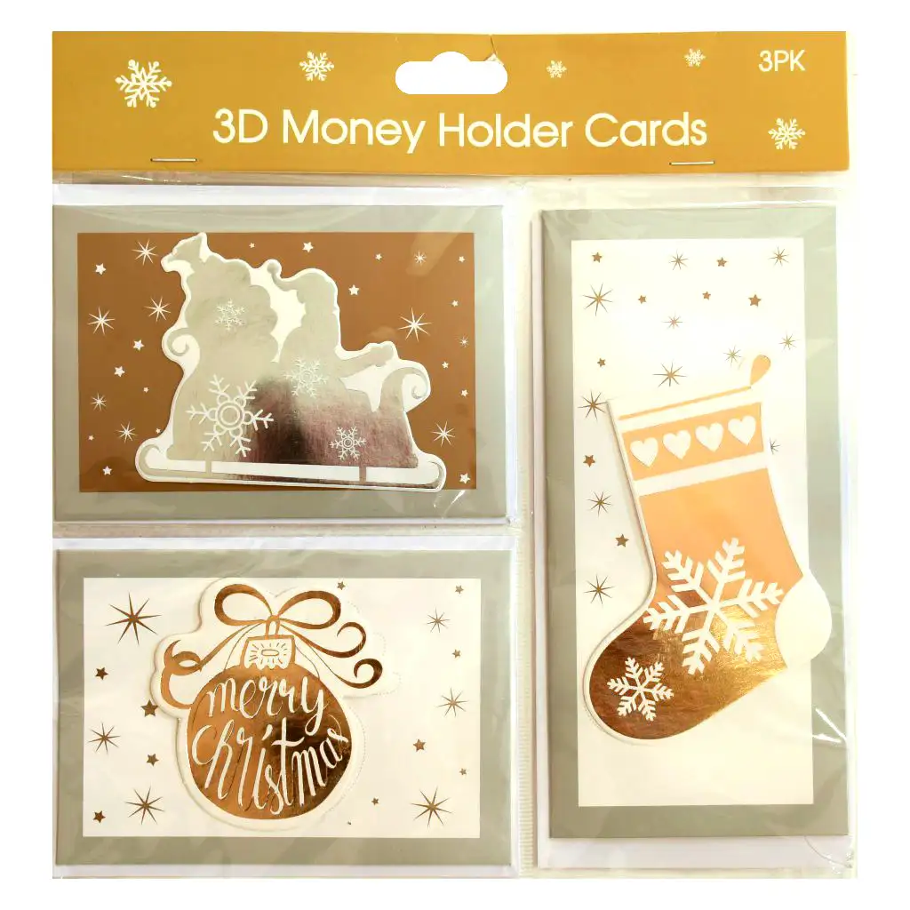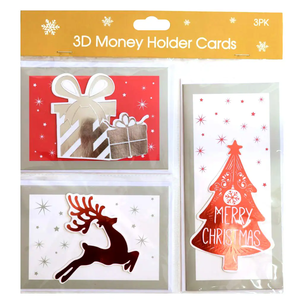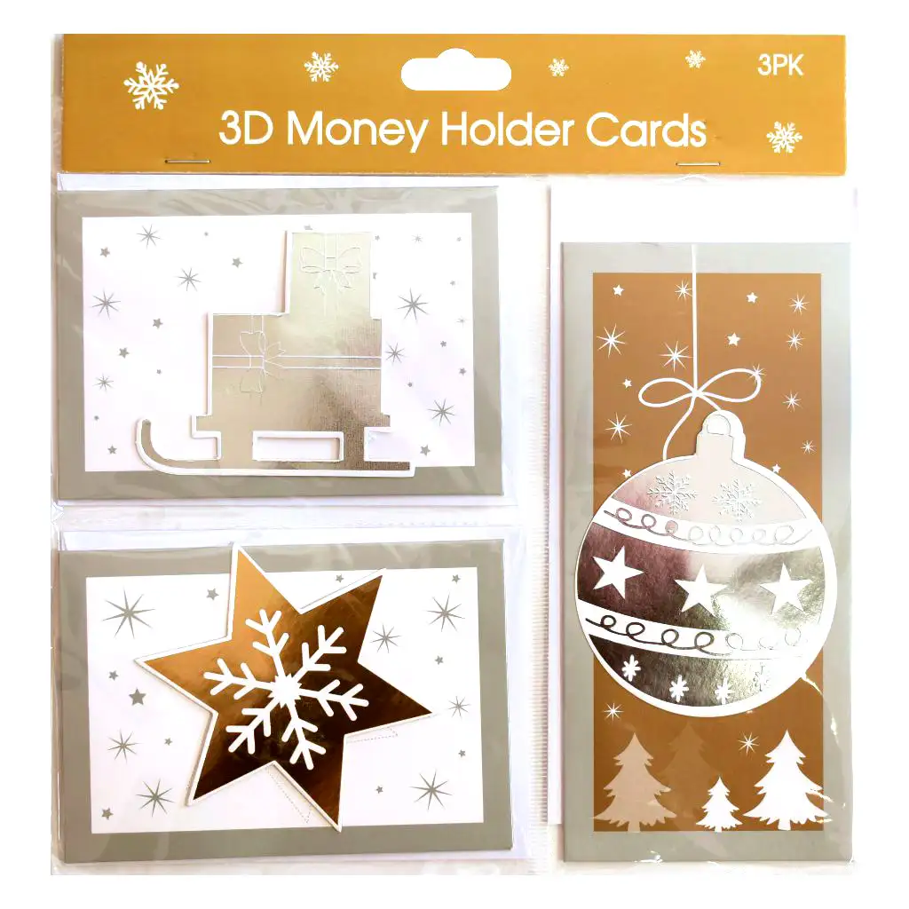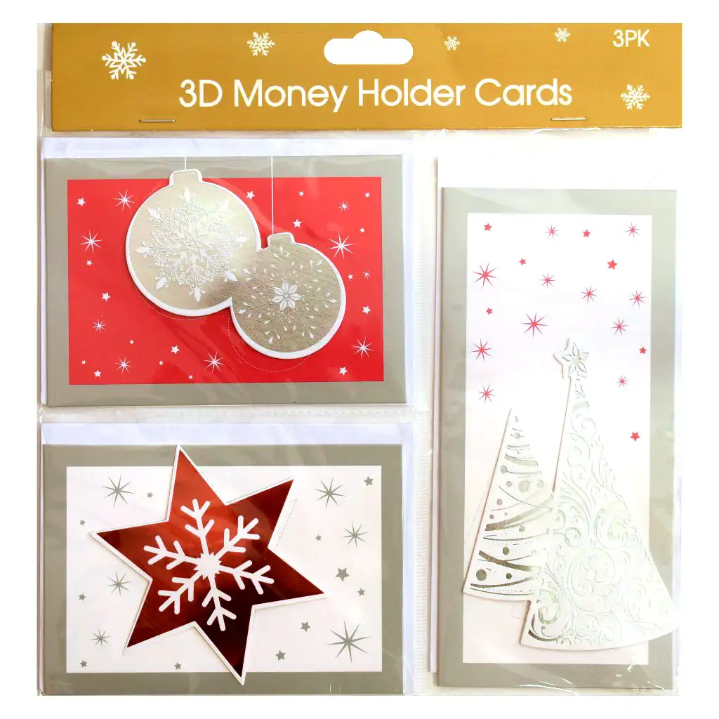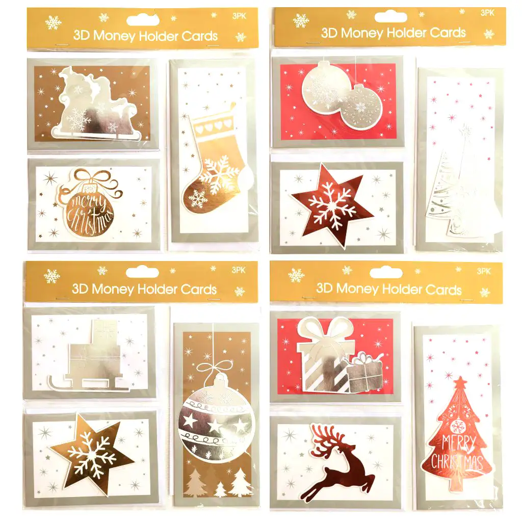 Sada vianočných pohľadníc s obálkami je dostupná vo štyroch čarovných variantoch, v dvoch farebných schémach (zlatá a červená) a je perfektnou voľbou na vyjadrenie sviatočných prianí. Každý variant obsahuje 3D prvky v zlatých a bielych alebo červených a bielych farbách, ktoré zabezpečujú, že pohľadnice sú jedinečné a štýlové. Každý balíček obsahuje 3 pohľadnice a príslušné obálky.