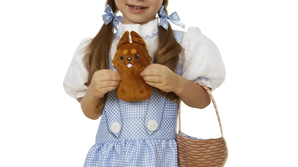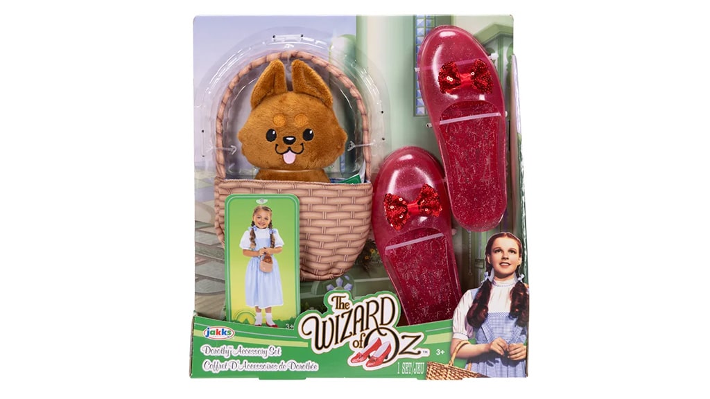 Súprava doplnkov Dorothy dotvára celkový vzhľad: s párom rubínovo červených topánok, košíkom a plyšovým psíkom Toto. Táto súprava je dokonalou voľbou pre každé malé dieťa, ktoré miluje fantazijné hranie rolí a klasické rozprávky.