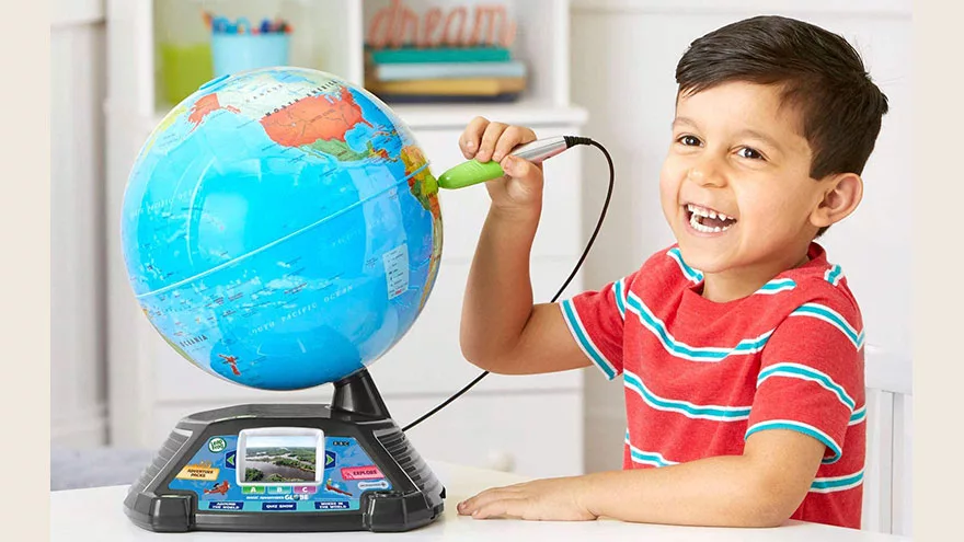 Deti môžu pomocou stylusu dotýkať 10-palcový interaktívny vzdelávací glóbus a objavovať nové miesta, jazyky, kultúry, zvieratá, geografické údaje, destinácie a oveľa viac prostredníctvom kvalitných videí od BBC. Deti si môžu pozrieť viac ako päť hodín animovaného a hraného obsahu na 2,5-palcovom zabudovanom videoobrazovke.