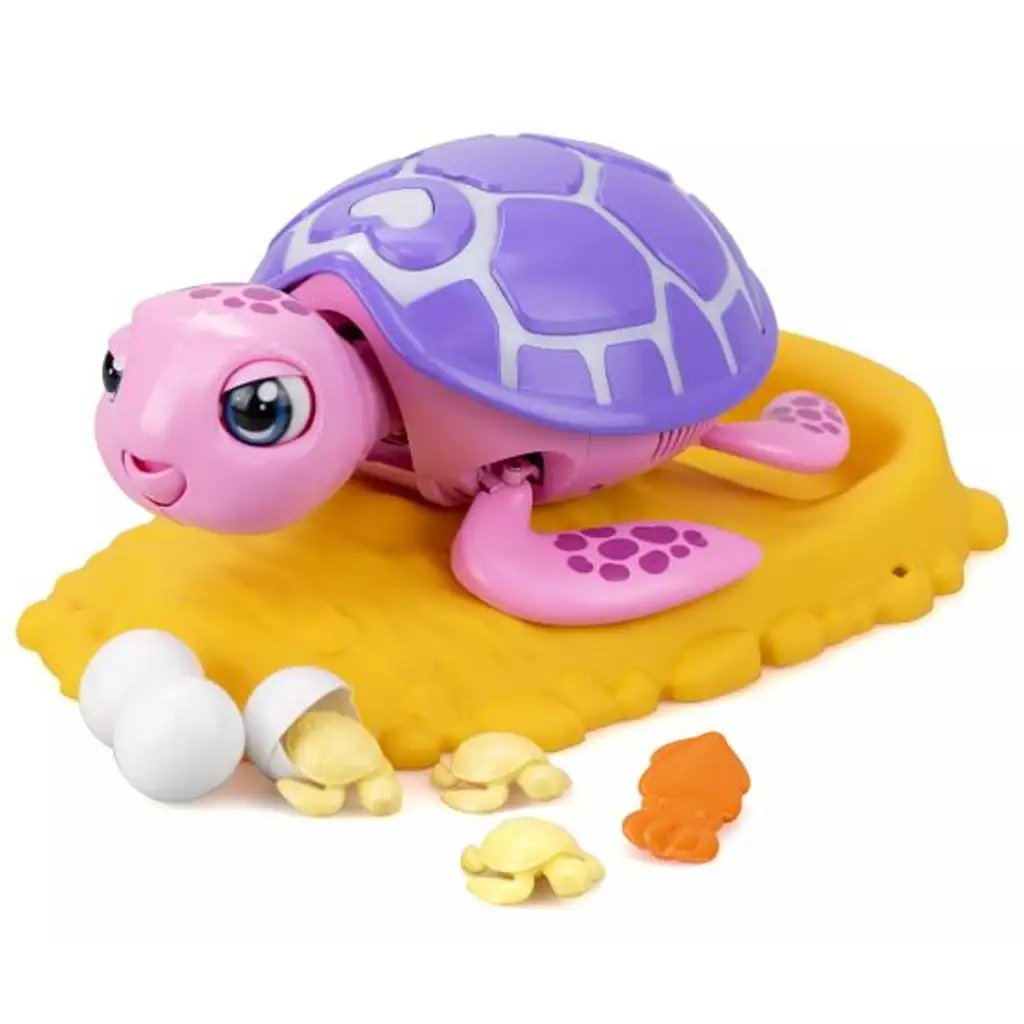 Korytnačku je možné aj nakŕmiť priloženým korytnačím jedlom a reaguje inak, ak dostane starostlivosť dlhšie alebo kratšie. Herná sada umožňuje deťom hrať sa s ňou znova a znova, pretože jej pancier sa dá ľahko odomknúť a vajíčka sa dajú vrátiť späť.