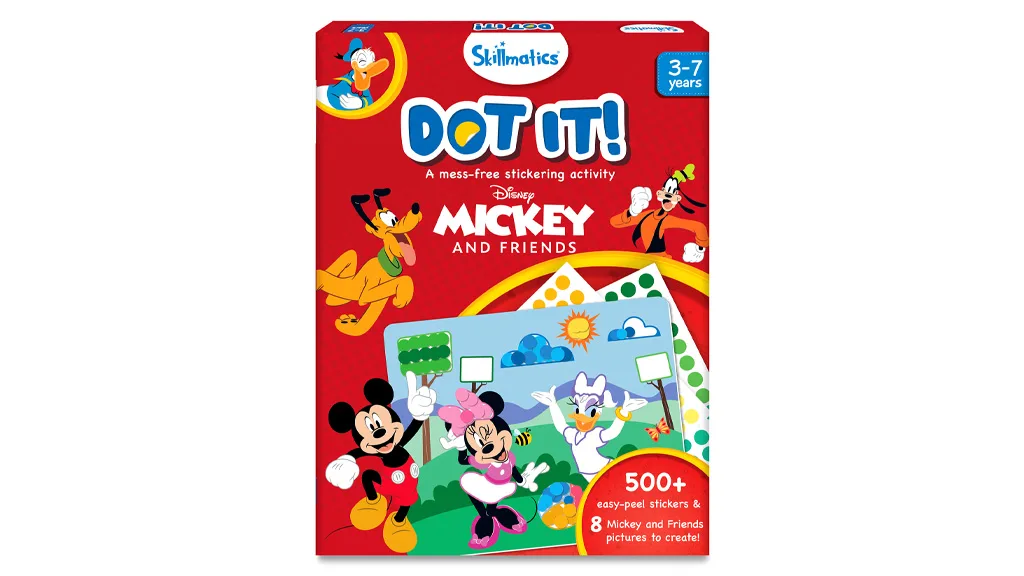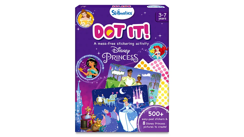 Dot It, ktorý je určený pre vekovú skupinu 3-7 rokov, je sada umeleckých aktivít s nálepkami bez neporiadku. Verzia Disney princezien prichádza v marci a verzia Mickey a priatelia bude dostupná v apríli.
