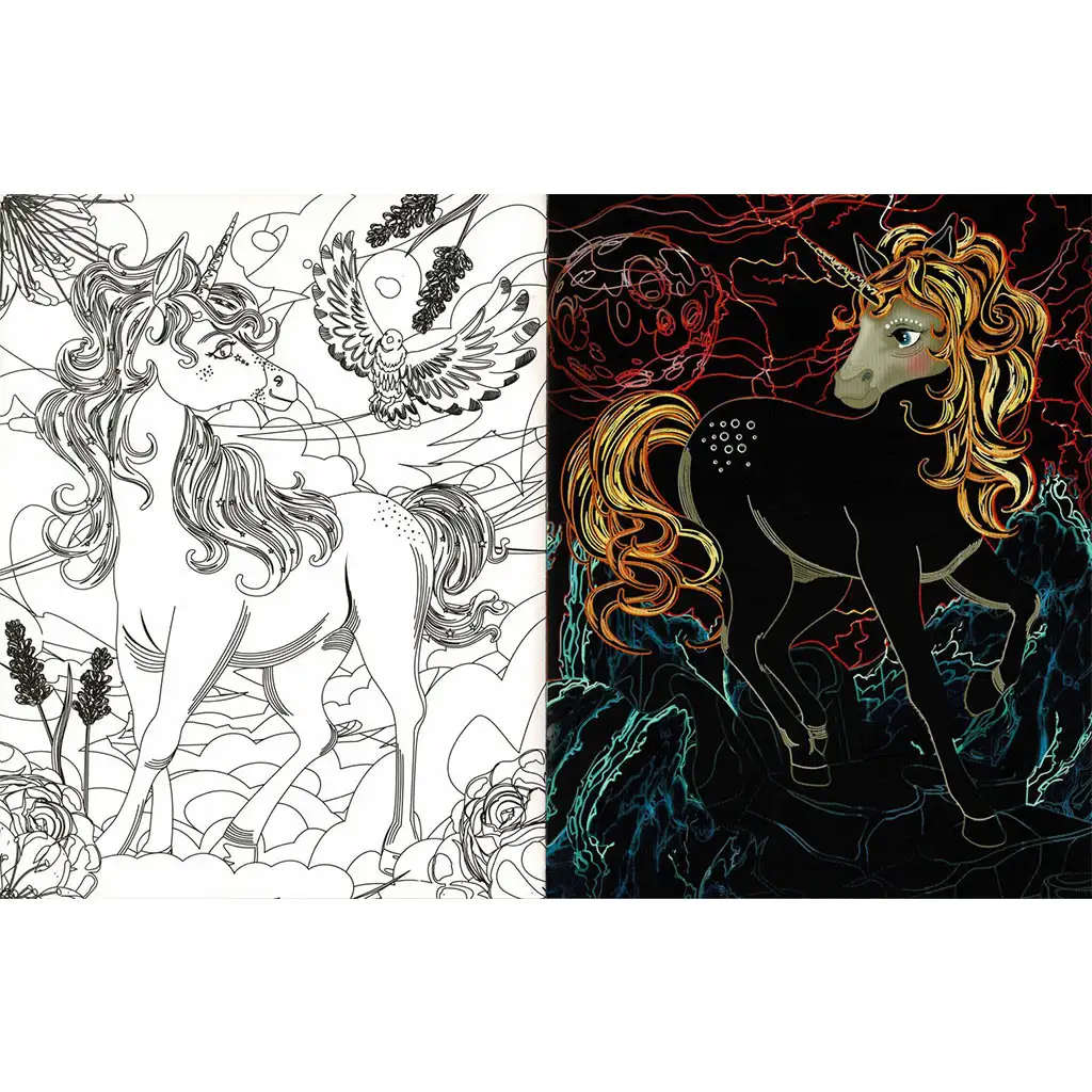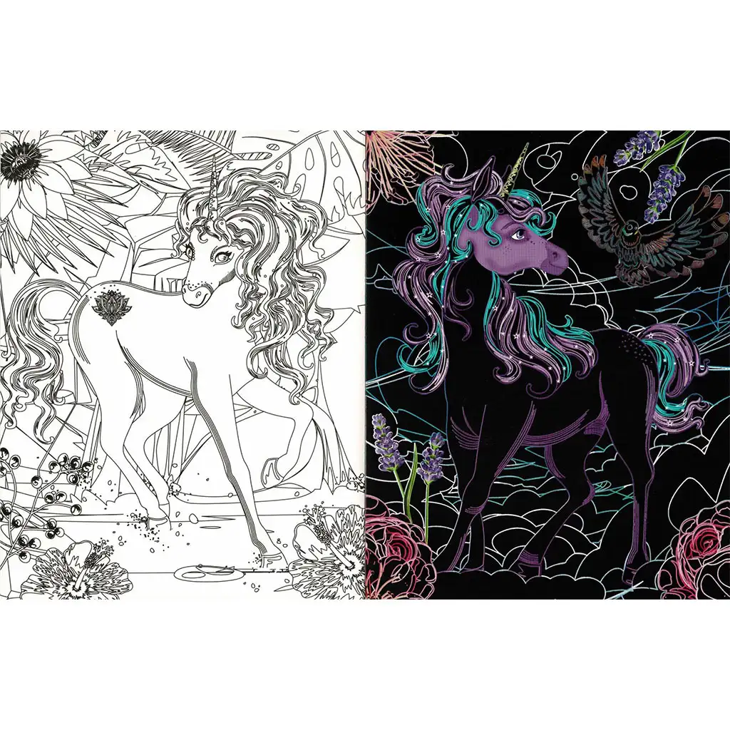 Ponorte sa do Skrytého sveta jednorožcov s touto špeciálnou omaľovánkou! Použite priloženú škrabaciu tyčinku na odstránenie čiernej vrstvy a uvidíte zázrak, keď sa na stránkach objavia farebné obrázky. Okrem magického zážitku môžete na stránkach na vyfarbovanie tvoriť aj sami a potom hotové dielo zvýrazniť, aby ste ho mohli zdieľať s priateľmi.